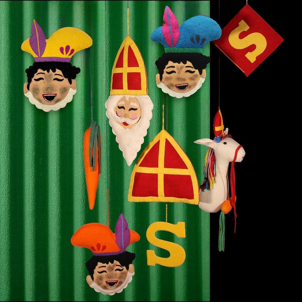 Deze door ons zelf ontworpen en handgemaakte Sinterklaasvormen van vilt zijn mooi opgevuld, fraai afgewerkt en hebben een handig ophangkoord. Hang ze ritmisch achter elkaar in de gang, aan je etalageraam d.m.v. een zuignap of gezellig als cluster boven je presentatietafel. Hoe je deze unieke items ook gebruikt, ze zorgen snel voor veel sfeer.