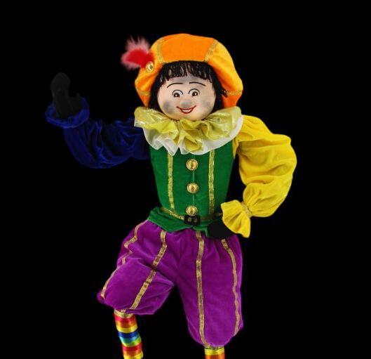 Onze pietenfamilie breidt zich ieder jaar uit. Dit jaar zijn er niet alleen nieuwe pieten van 40cm bij gekomen maar ook grote pieten van 90cm. Ook zij hebben metaal in armen en benen zodat ze elke stand kunnen aannemen. En zoals in de hele familie zijn de handen en voeten voorzien van klittenband zodat ze overal aan kunnen hangen.