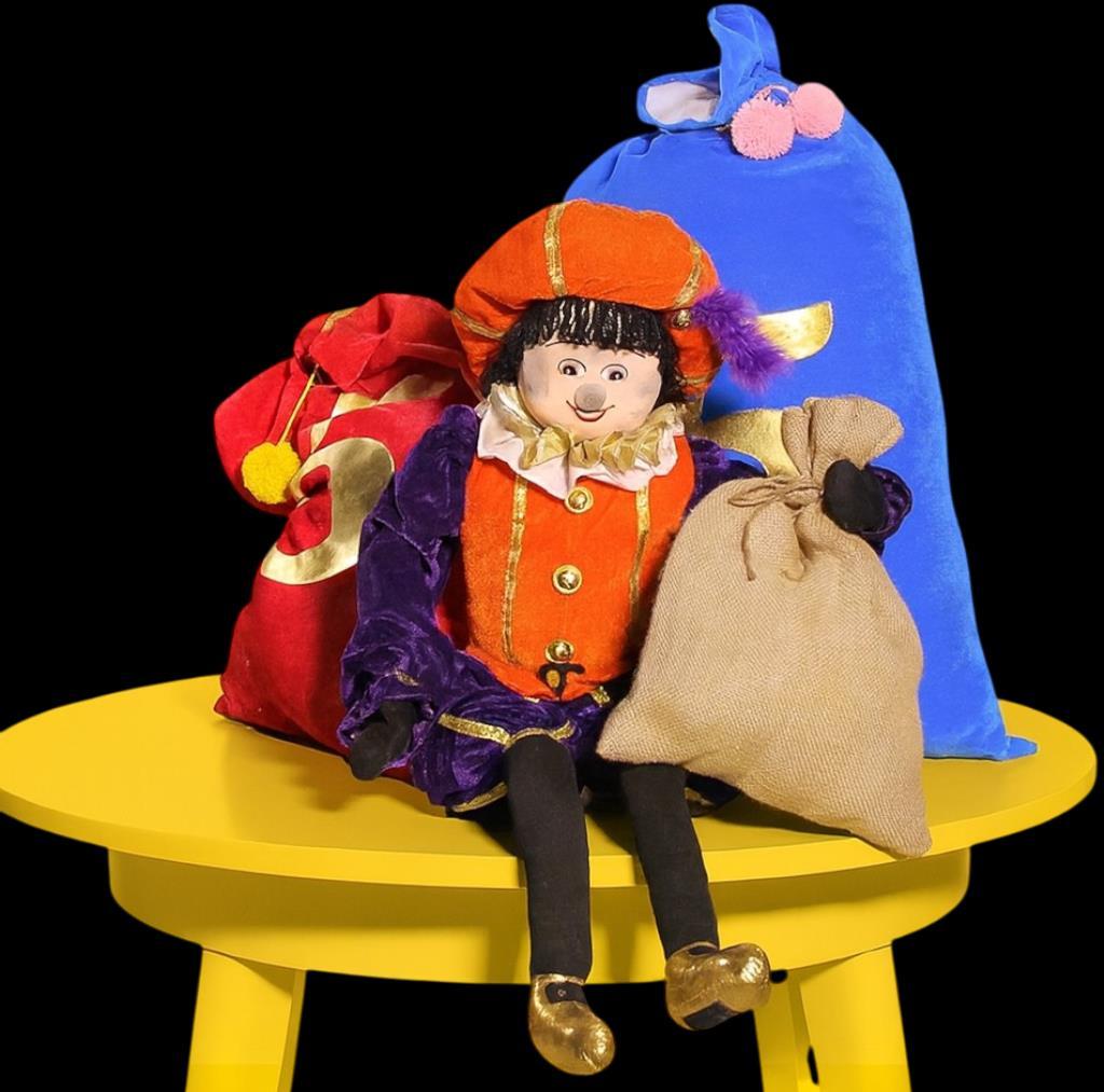 Omdat de pietenfamilie van 40cm een groot succes is en we vraag kregen naar grotere pieten, is de pietenfamilie uitgebreid met pieten van 90cm.