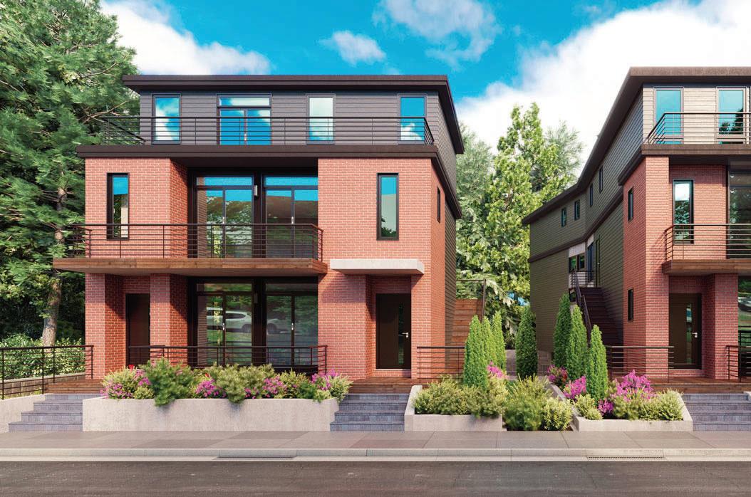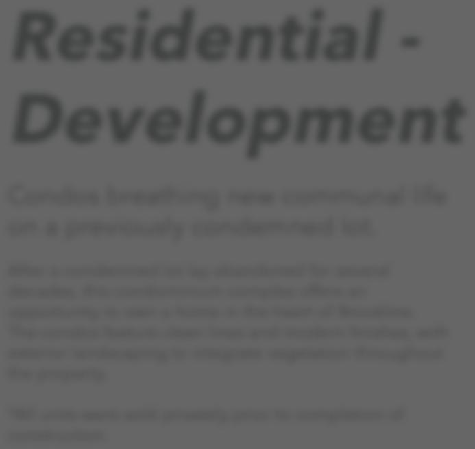 After a condemned lot lay abandoned for several decades, this condominium complex offers an opportunity to own a home in the heart of Brookline. The condos feature clean lines and modern finishes, with exterior landscaping to integrate vegetation throughout the property.