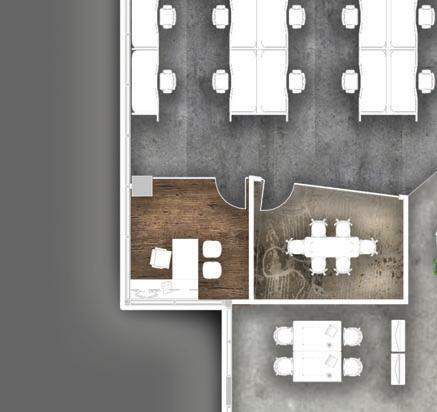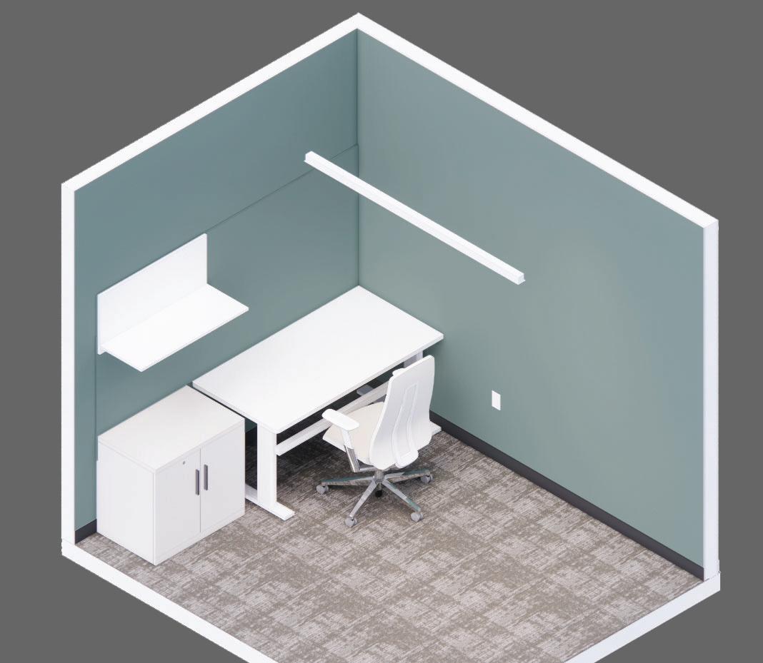 Rendering each space type with adjacencies to private workstations allowed the design team to direct the client in how to effectively layout their office.