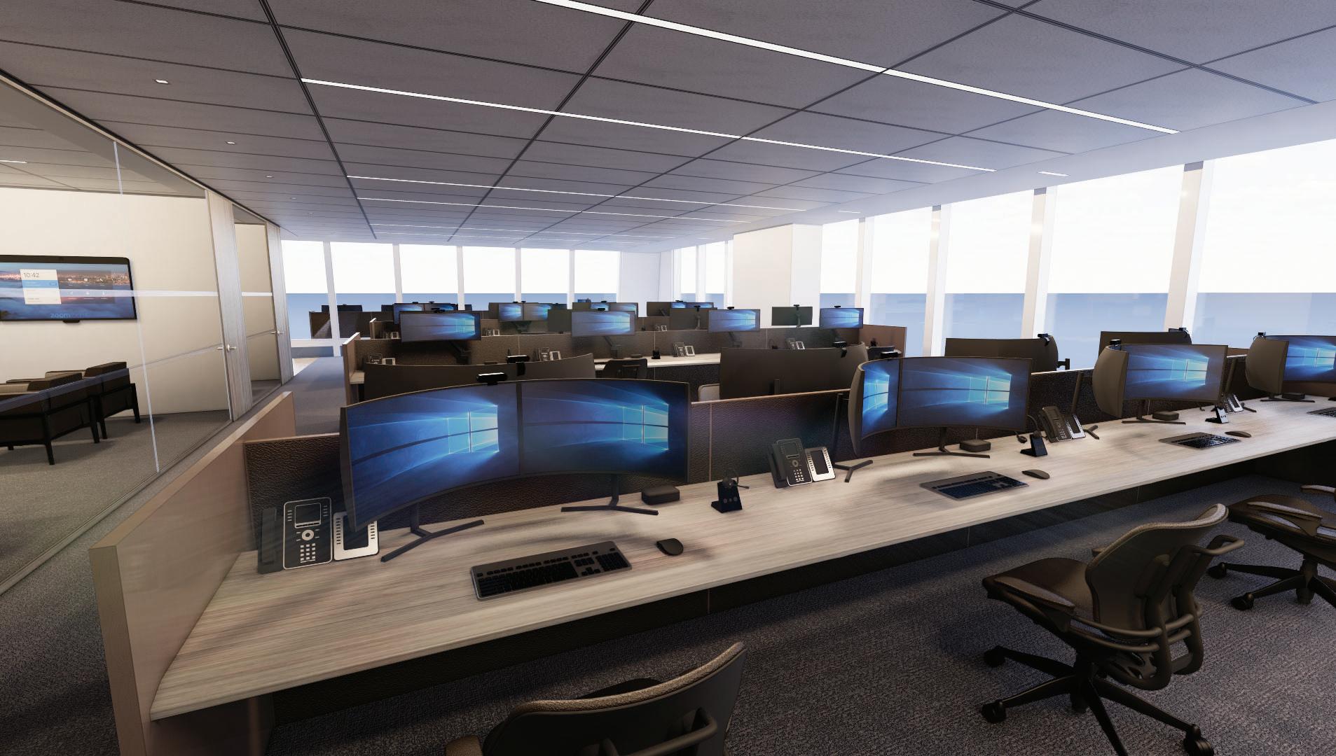 With a detail oriented client, the individual space types of workstations was equally as important as meeting and conference spaces. Each workstation is detailed to reflect the exact headphone, monitor, and keyboard sets for each team, allowing the client to fully visualize adjacencies and team office dynamics.