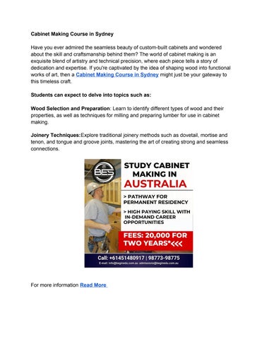 Have you ever admired the seamless beauty of custom-built cabinets and wondered about the skill and craftsmanship behind them? The world of cabinet making is an exquisite blend of artistry and technical precision, where each piece tells a story of dedication and expertise. If you're captivated by the idea of shaping wood into functional works of art, then a Cabinet Making Course in Sydney might just be your gateway to this timeless craft.