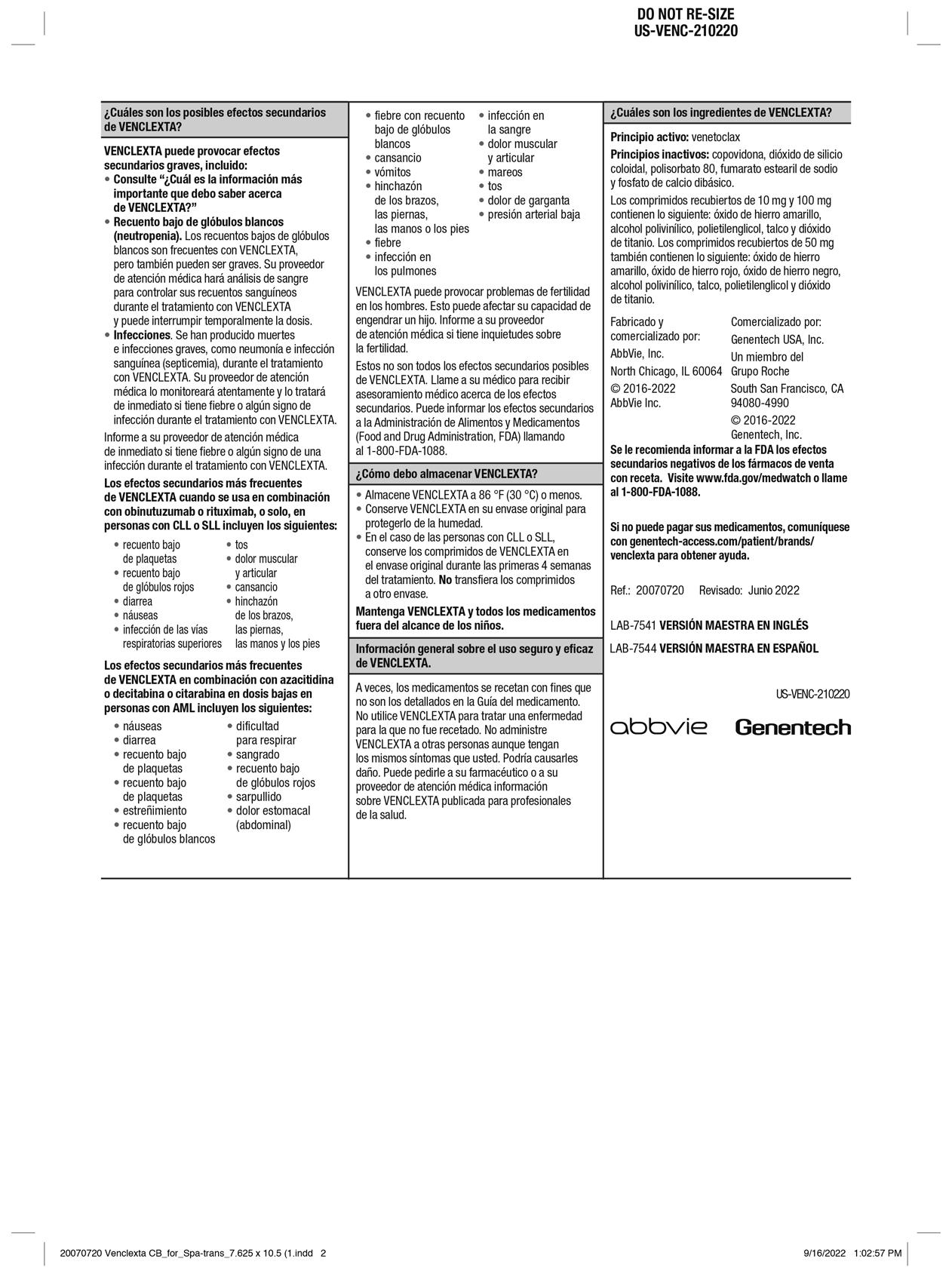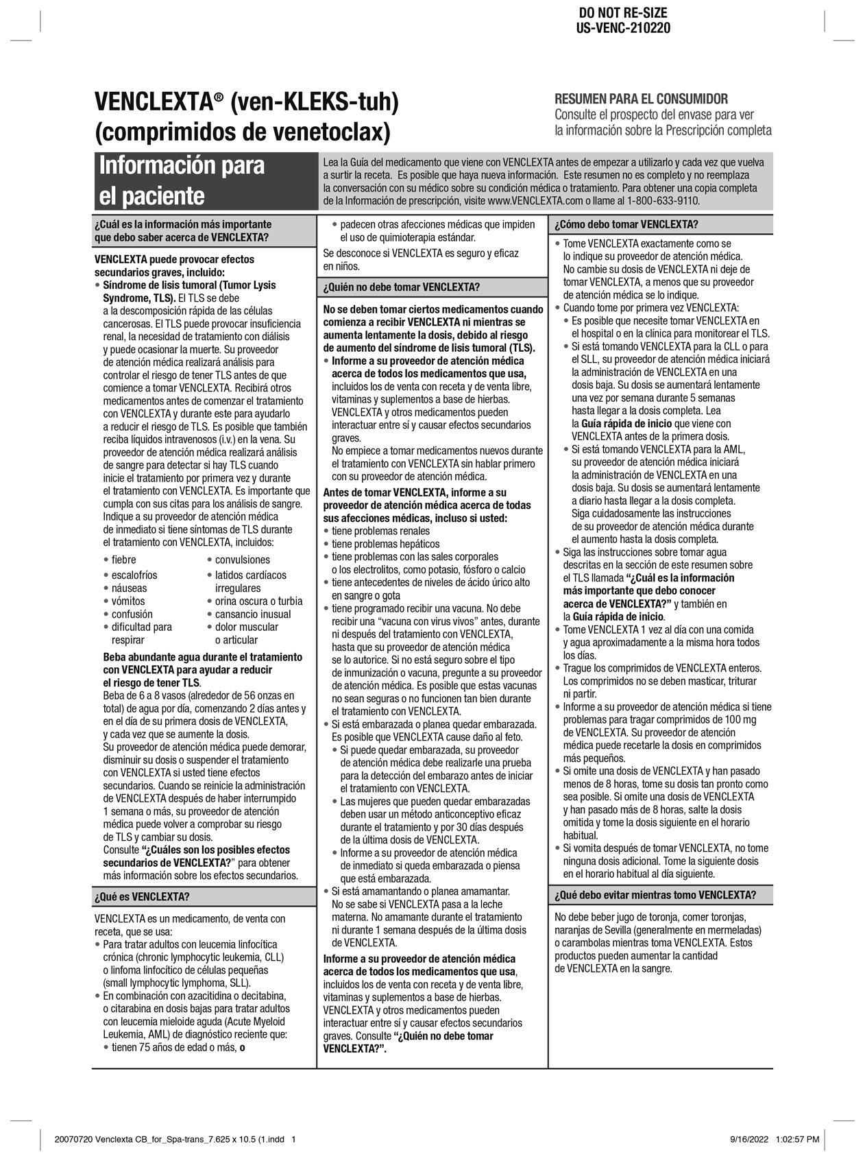 Si no puede pagar por su medicamento, comuníquese con genentechaccess.com/patient/brands/venclexta para asistencia.