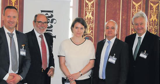 Diskutierten über den Arbeitsplatz der Zukunft in der Verwaltung: Gérard Mons, Uwe Proll, Marianne von Glasow, Ulrich Zuber, Waldemar Zgrzebski ( v.l.n.r.) Foto: BS/Jacobson