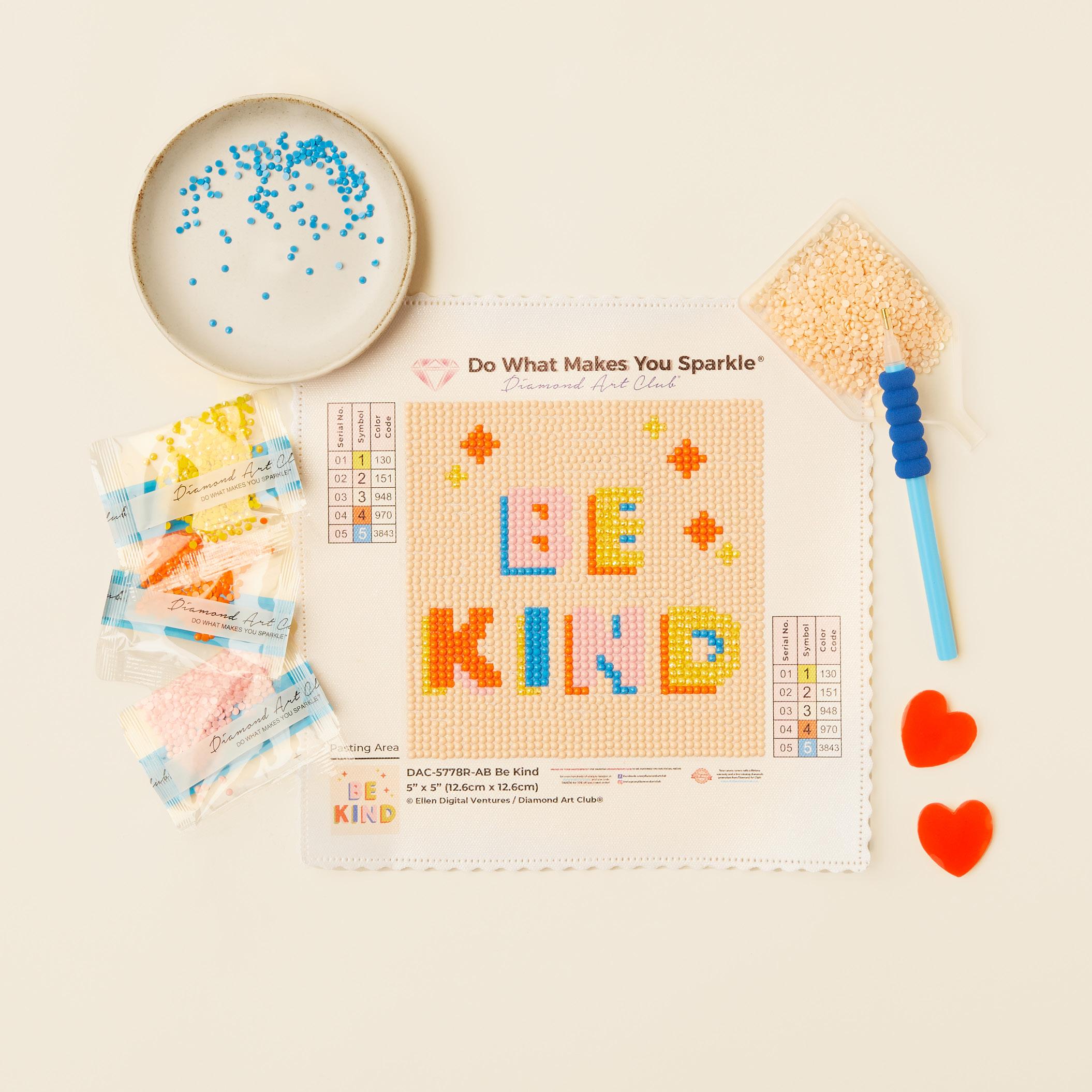 Diamond Art Club® is the leading manufacturer of the highestquality diamond painting kits in the world. Their mission is to help people practice mindfulness and improve mental health while creating a positive outlet for stress relief through the meditative, DIY craft of diamond painting. Diamond Art Club® genuinely licenses curated designs from inspiring artists worldwide, and worked with us at BE KIND. to create a custom motif just for you!