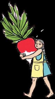 The theme of gardening inspired this idea of a group of people cultivating something beautiful together. I loved the idea of oversized flowers and vegetables next to these little people, which feels very exaggerated and fun