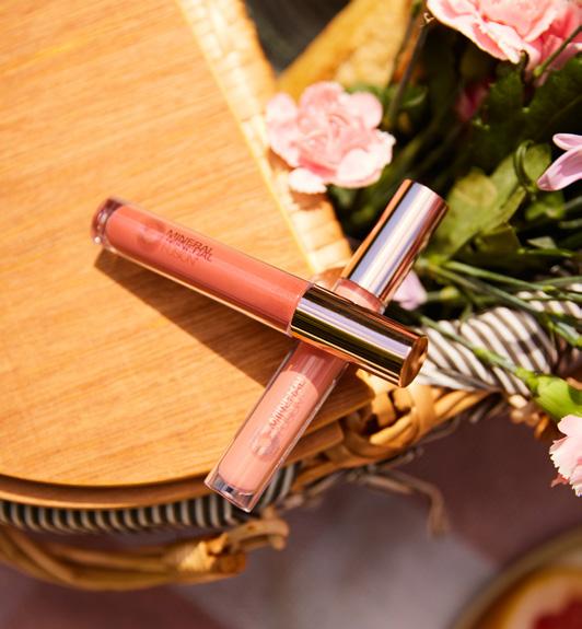 Your Summer BE KIND. box contains not one, but two, Mineral Hydro-Shine Lip Glosses. Jaipur, the peachy pink, and Bermuda, the pale orangey pink, will be a new addition to your out-the-door keys, phone, wallet check.