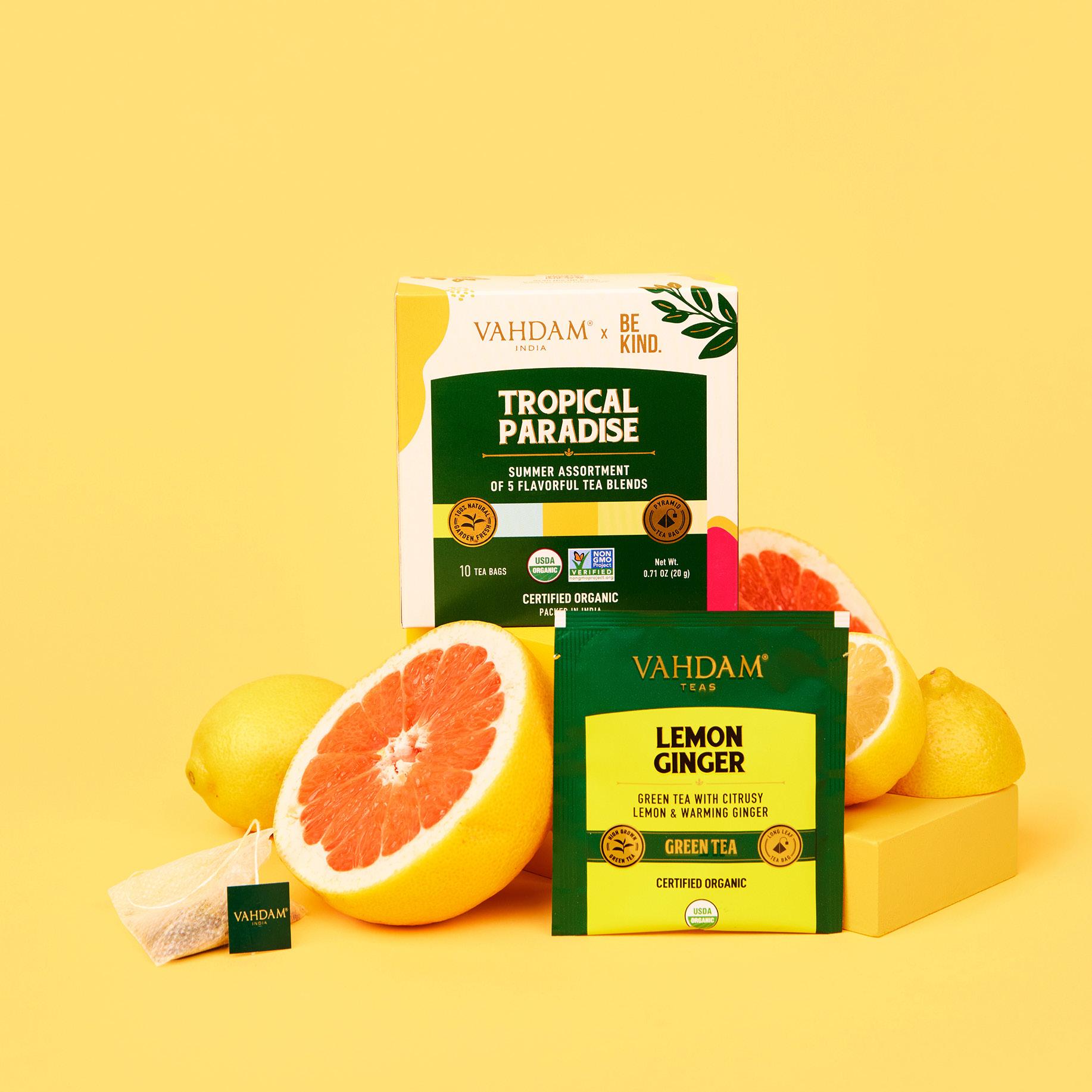 Vahdam Teas partnered with us at BE KIND. to provide you with a special Tropical Paradise assortment of their flavorful tea blends. This assortment contains two sachets of each of the following:
