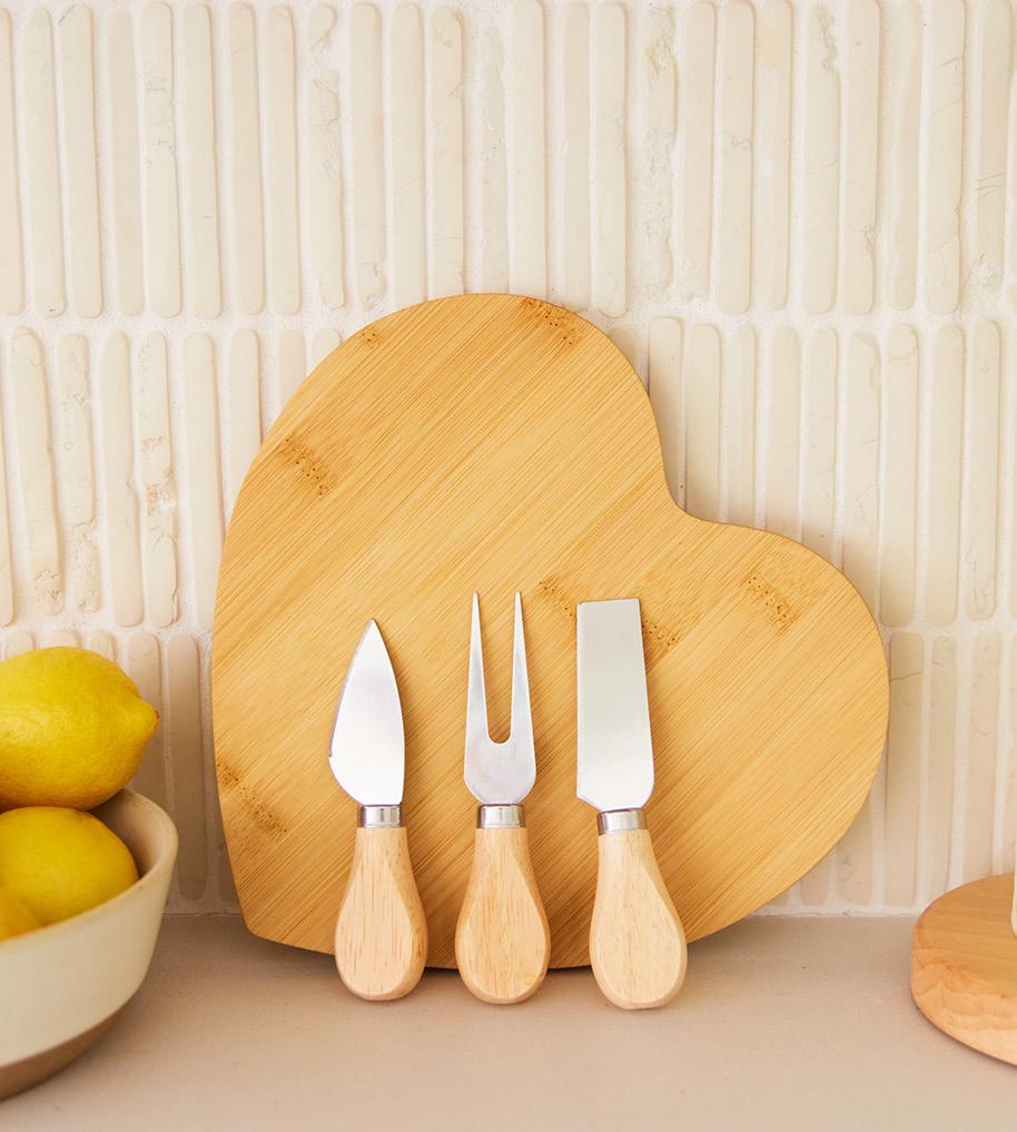 HEART CHEESE BOARD AND CHEESE KNIVES SET