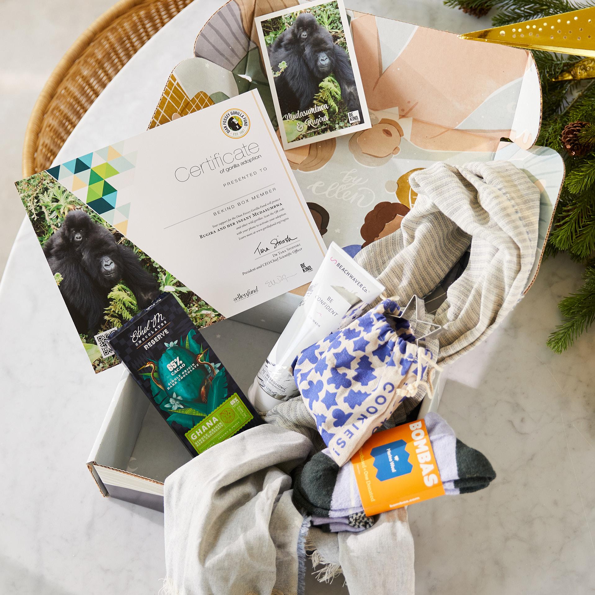 My Winter Box is here and I can’t wait for you to enjoy all the things inside! These brands are doing wonderful things for our planet, and the people and animals living on it, too. It’s filled with products that keep our bodies warm and cozy, our hair shiny, our kitchens filled with cookies & chocolate, and our gorillas thriving. The items in this box are particularly special to me and I know you’re going to love them.