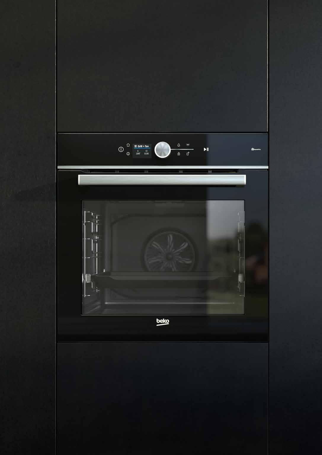 La manopola centrale e il touch screen con LED a luci bianche rendono i nuovi forni Beko moderni ed eleganti, ma allo stesso tempo di facile utilizzo e alla portata di tutti.