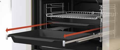 Il sistema a estrazione con guide telescopiche consente un accesso facile e sicuro al vassoio di cottura.