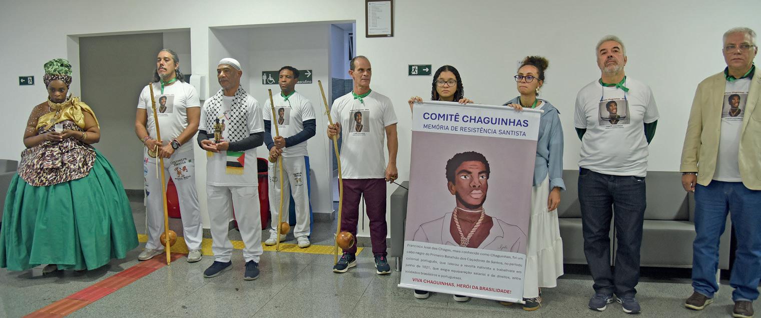 Um ano antes da proclamação de independência do Brasil, um soldado negro do 1o Batalhão de Caçadores de Santos é levado à forca. Julgado por liderar um motim pela falta de pagamento de soldo. Causou espanto quando a corda por três vezes se rompeu. Embora o povo pedisse clemência aos gritos de “Liberdade”, o jovem acabou sucumbindo num linchamento feito por seus algozes. O fato é que o triste episódio que aconteceu na cidade de São Paulo acabou resultando na morte do cabo Francisco José das Chagas, o Chaguinhas, e o clamor por liberdade foi a origem do nome do bairro onde tudo aconteceu. Hoje Chaguinhas é lembrado por sua coragem na luta por uma sociedade mais justa. Assim foi criada a Semana Francisco José das Chagas, Chaguinhas, já em sua segunda edição. O evento ocorreu de 16 a 28 de junho. Dia 27 aconteceu sessão solene na Câmara Municipal de Santos, através de reivindicação do Comitê Chaguinhas de Memória de Resistência Santista, proposta pelo vereador Chico Nogueira, que é lei municipal sancionada pelo prefeito Rogério Santos desde 2024. Durante o evento aconteceu a apresentação dos grupos de Capoeira Escola Mestre Marcio e do grupo Abayomi Afro Brasil.