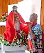 sempre preparada para recepcionar os turistas com comidas típicas caiçaras. Para Armando de Souza, morador há mais de 60 anos na Ilha, foi um dia especial para comemorar seu aniversário de 76, que aconteceu no dia de Bom Jesus, renovando sua fé e da família.