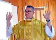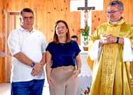 Padre Claudenil durante a missa, ao lado da vice-prefeita e esposo.