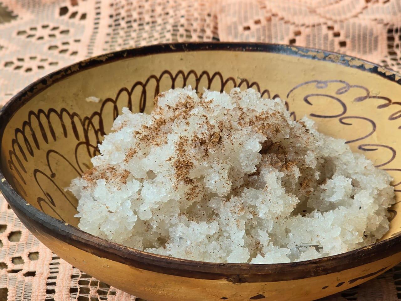 Ingredientes: 250g de polpa de um coco seco/ 250g de açúcar cristal/meia xícara (chá) de água/1 cravo da Índia/150 ml de leite de vaca/canela em pó a gosto