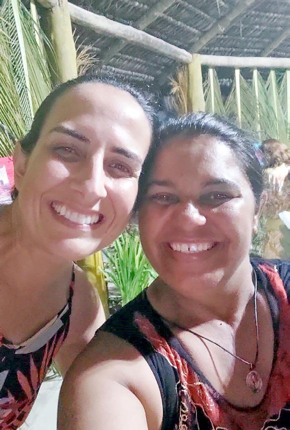 A guia de turismo Sandra Amando e Ubiraci em Coroa Vermelha na Bahia