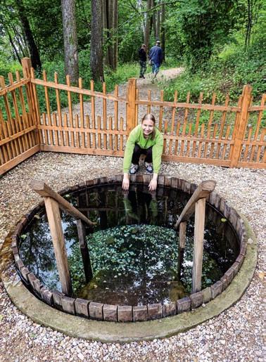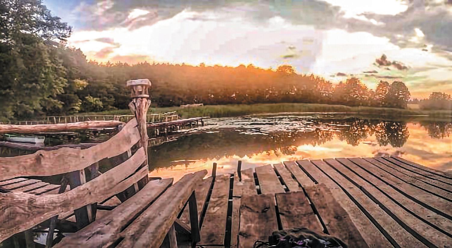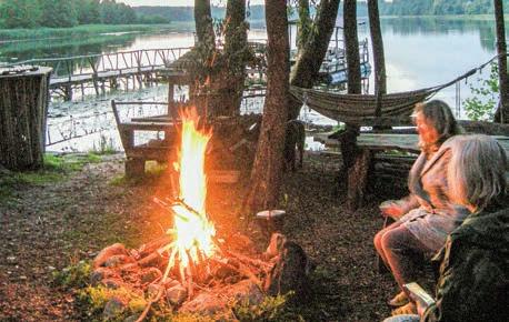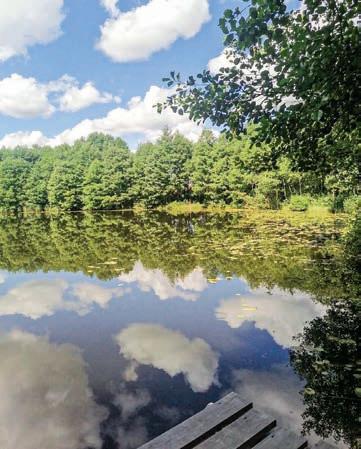 на дзесяць гектараў, быў закладзены сад і створана сістэма прудоў. Да ўсяго гэтага можна дадаць аранжарэю, паркавы лабірынт, сонечны гадзінік і лодачную прыстань. Гаспадары мелі карчму і краму. Пабудавалі бясплат ную школу для сялян. На рацэ Страча была створана плаціна. Падаючая вада давала энергію, якая прывод зіла ў дзеянне млын, лесапільню. Па рацэ тагачасныя «прадпрымальнікі» сплаўлялі лес. А дзякуючы прадума най гідратэхнічнай сістэме з десяць прудоў, шлюзаў і каналаў і падземна га трубаправода, звязаных з ракой, вырашаліся многія гаспадарчыя пытанні. У канцы 1920–30-х гадах тут разводзілі рыбу. На жаль, да на шага часу дайшлі толькі рэшткі з той былой капітальнай забудовы і парку. Пра сядзібу сям’і Старжынскіх можна атрымаць уяўленне дзякуючы таму, што захаваліся пейзажны парк з прудамі, сядзібны дом, два флігелі і два свірна з бутавага каменю. Засталіся пабудовы і ў Шэметаве: фасад бровара, валоўня, кузня, дзеючая сістэма сядзібных прудоў (самая вялікая ў Беларусі з тых, што пабудаваныя ў ХІХ стагоддзі, касцёл і плябанія. Апошнімі гаспа дарамі гэтых багаццяў, былі Скірмунты. ФАРБЫ І ПАХІ Тут цяжка ўседзець на адным месцы. Многія пада рожнікі перасаджаваюцца на веласіпеды, каб паспець аглед зец ь, як мага больш прыгожых мясцін. Як толькі прыгрэе сонейка і пачынаюць з’яўляцца першыя кветкі, га сцей прымае Аптэкарскі сад. Некаторыя турысты стараюц ца прыехаць сюды менавіта на цвіценне вішні — у канцы мая. Можна захапіць з сабой посцілку і паляжаць — па рэлаксаваць пад квітнеючымі дрэвамі. Дарэчы, тут ёсць і незвычайны ложак з травы, на якім любяць адпачыць і малыя, і дарослыя пасля адмысловай экскурсіі. Тут распавядаю ць пра ўласцівасці раслін,