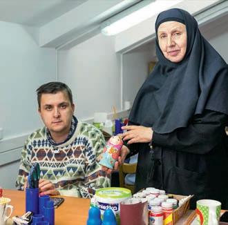 сярэбранага ўзросту арганізавана шэфства над маладымі інвалідамі ад дзялення дзённага прыбывання. Яны суправаджаюць іх на службу, знаходзя цца з імі падчас богаслужэння. Таксама праводзяць майстар-класы па вырабе калядных і велікодных сувеніраў. І, канешне, органы дзяржкіраван ня ў супрацы з праваслаўнай царквой стараюцца прасоўваць традыцыйныя сямейныя каштоўнасці. С святары ўд зельнічаюць ў круглых сталах і нават у пасяджэннях грамадскіх пунктаў аховы парадку, бо іх уплыў і аўтарытэт на месцах для большасці прыхаджан не аспрэчваецца. Надзея Бузіноўская Фота: адкрытыя крыніцы