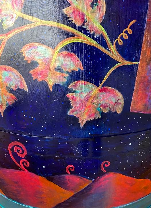 Intervención con pintura acrílica en Barrica de madera de Viña Estampa