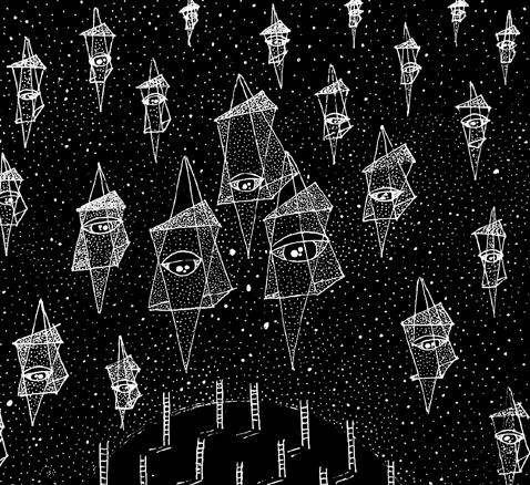 2018 “El Café”. Grabados Xilografías. “Viaje Nocturno”.Instalación. Café Baqué, Concepción, Chile.