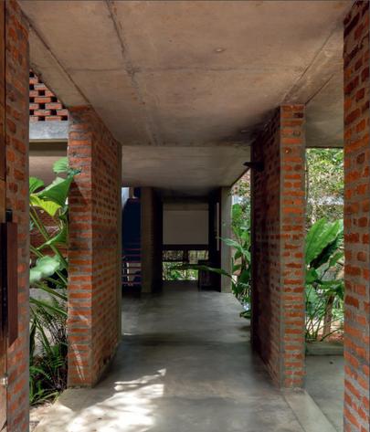 Dicho argumento se puede ver reflejado en una de sus obras llamada “Casa estudio en Rajagiriya” donde hace uso de estrategias constructivas y paisajísticas para crear un microclima más fresco en el interior del edificio Como podemos observar en la Figura 2, la solución se logró simplemente mediante el estudio de la incidencia solar para luego realizar una fachada perforada de muros de ladrillo visto los cuales además de bloquear el ingreso de la luz permiten la circulación del aire