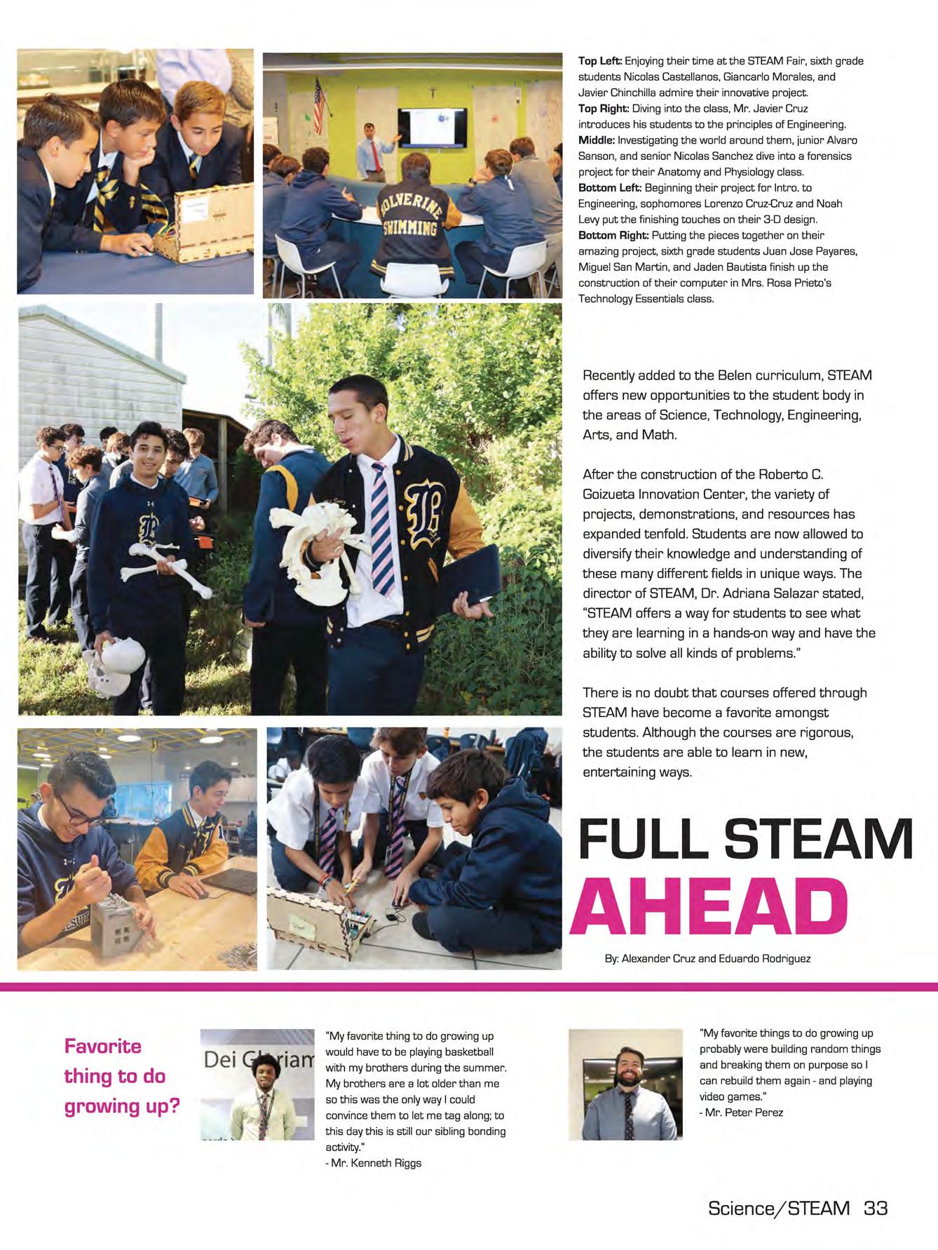 Bottom Left: Taking a moment off from their busy day, seventh grader Maximo Bigott and Fr. Guillermo Arias, S.J. discuss spiritual life.