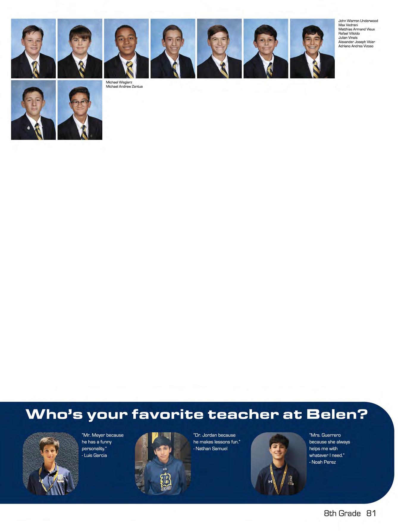 Top Left: In the counseling offices, eighth grader Luciano Leon and seventh grader Jose Ignacio Rasco speak of the importance of keeping a school and social life balance with Mr. Daniel Montesi.