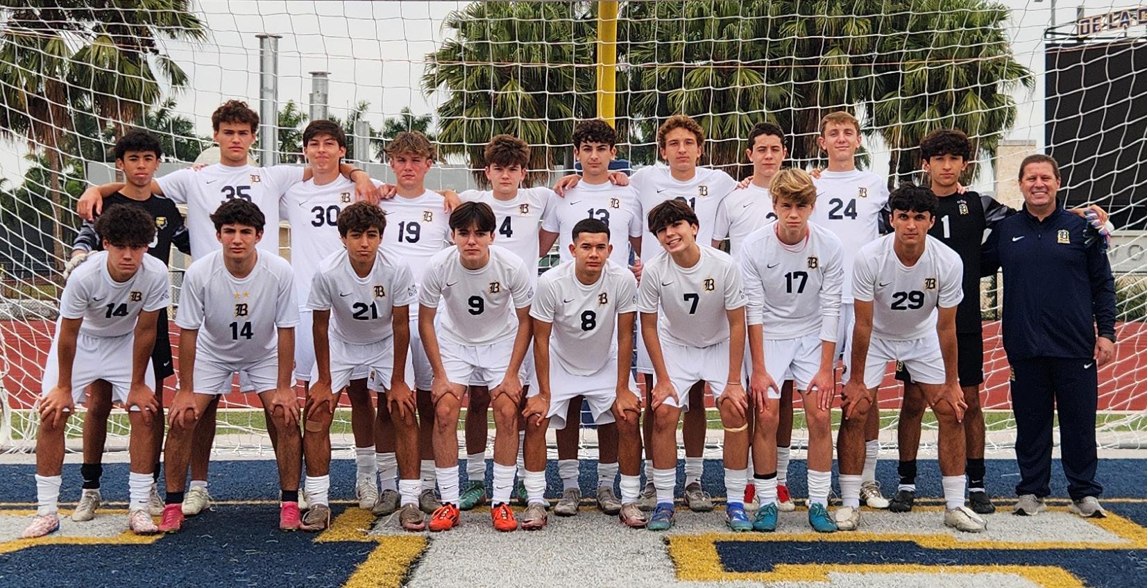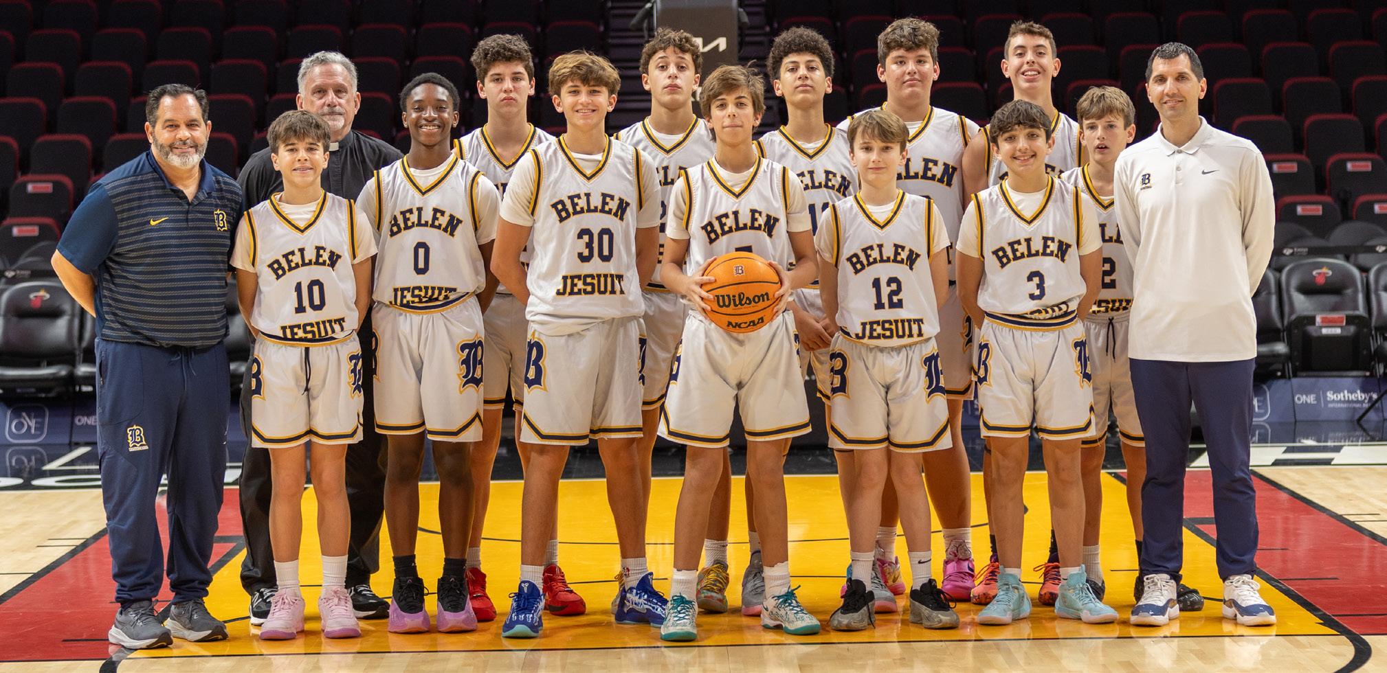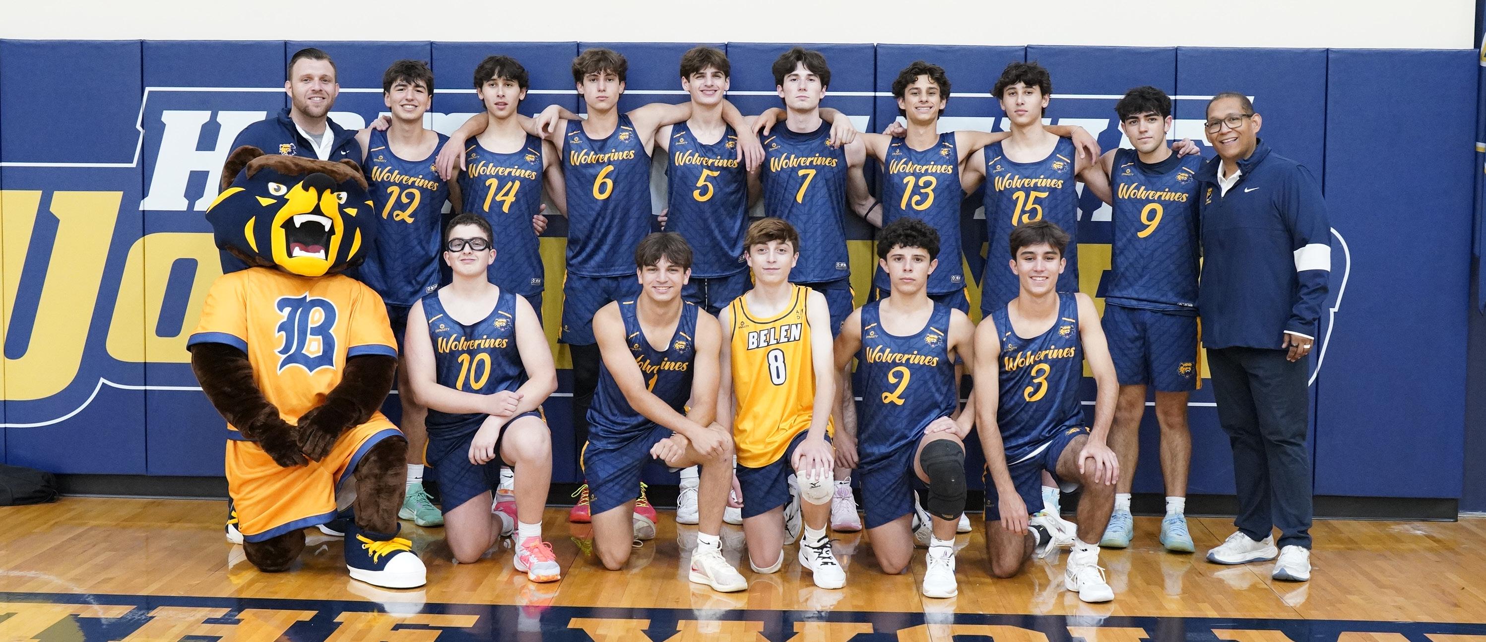 The team began the year with one simple goal, to be better than last year. Facing a tough schedule, the team finished the year with a much improved record of 20-9. The year was highlighted by a thrilling OT victory over Gulliver, finishing 3rd in the NOLA Jesuit Blue Jay Christmas Classic, and season turning victories in games against Southridge and Bishop Verot. The team however shined most when the lights were the brightest, the playoffs, upsetting Norland to win their 3rd District Championship in the last 4 years for the program before making it to the Regional Semifinal, something only a handful of teams in Belen history have accomplished. The team was led by one of the better backcourts in Dade County: Sophomore Orlando Roche, who can score from any spot on the floor, led the team averaging 17.8ppg, do it all Junior combo Guard, Alec Arnholt, finished second on the team in scoring (13ppg) and second in assists (3pg) and Senior floor leader, Point Guard Mikey Valdes led the team in assists (5.3apg - 1st in Class 5A) and rebounds (6rpg). Seniors Javi Vasseur and Max Klemick played an essential part in the team’s success with their versatility on offense and with their defensive positionality. Senior Nicholas Misiunas and Junior Adrian Diaz De Villegas manned the middle and provided great defensive energy. Senior Julio Blandon provided all-out effort and veteran presence in both the locker and weight room. Juniors Lucas Diaz, Lucas Baldor, and Sophomore Richie Blanco played important roles with their abilities to shoot and create for others. Junior Lucas Hernandez and Sophomores Felipe Ariza, Alejandro Bird-Beltran and Jeevan Navarro aided in crucial preparation, energy and team morale. This special season was a testament to the boys’ willingness to work hard, prepare and believe in achieving something TOGETHER.