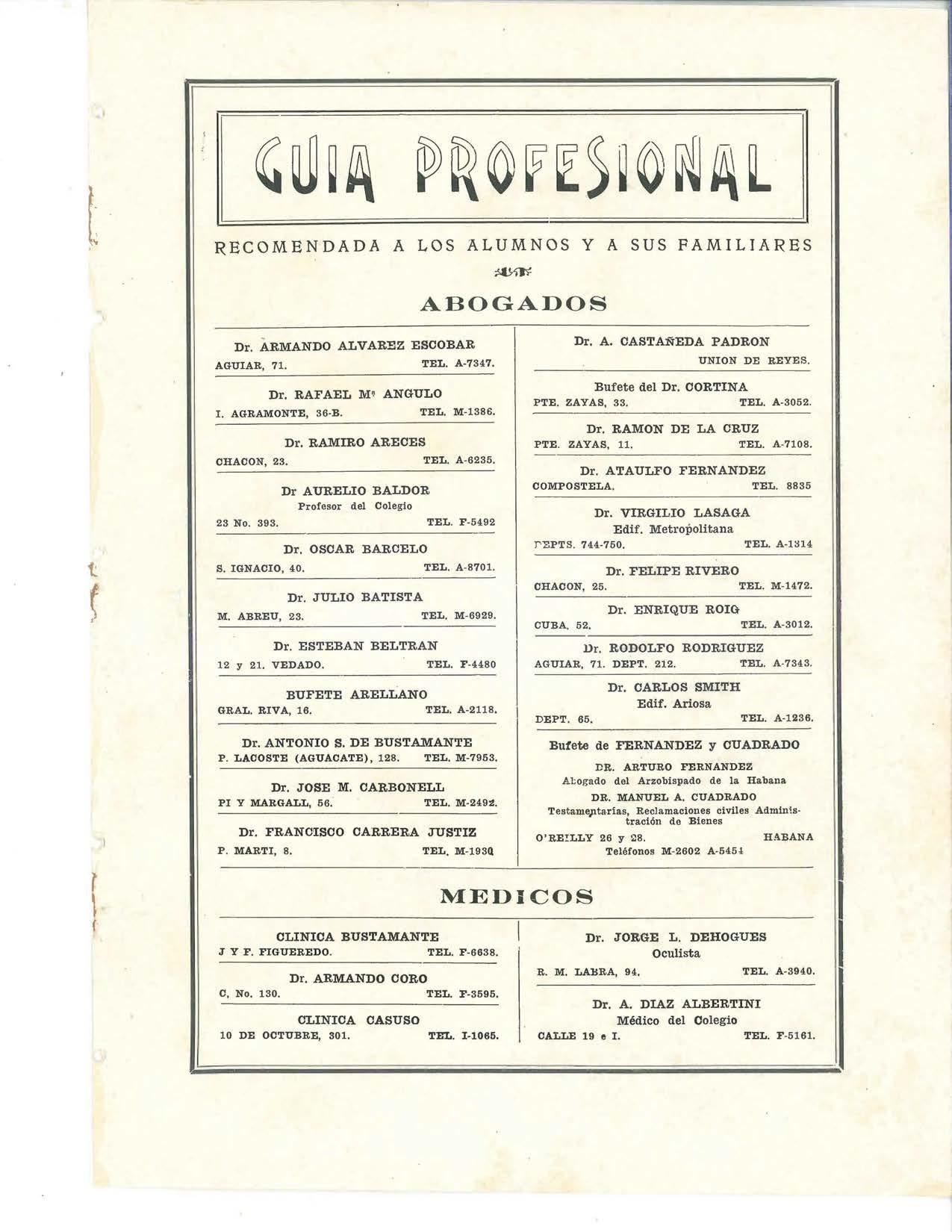 I. AGRAMONTE, 36-B. TEL. M-1386.