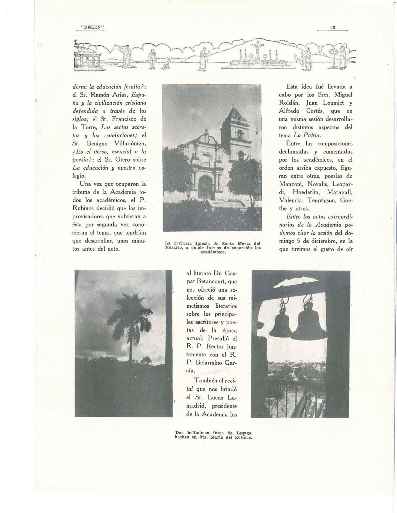 Cosas que honran al Colegio de Belen. Cr6nica Deportiva: Loumiet. Recuerdo de la excursi6n a Varadero. La Academia Literaria Avellaneda: A. Cortes. Los Ninos Cantores de Viena: L. Ripoll. 'if Amena. Solemne Distribuci6n de Premios.