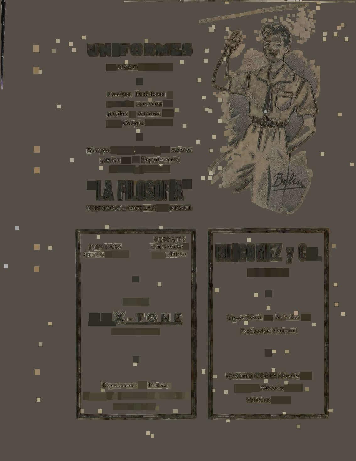 OFRECE A TODOS LOS INTERNOS DEL COLEGIO DE BELEN ASI COMO A SUS FAMILIARES, LAS VENTAJAS CARACTERISTICAS DE CALl DAD Y GARA NTIA QUE HAN DADO FAMA A TODOS NUES TROS ARTICULOS. COLCHONES, COLCHONETAS, ALMOHADAS, ROPA DE CAMA, TOHALLAS, MOSQUITEROS, CUBRECA· MAS, M UEBLES PAR ,A Nl NOS, DIVANES DE ESTUDIANTES, Etc. Etc.