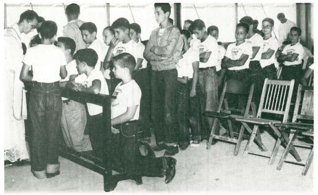 Estos fines saben muy bien, d6nde se pasan mas alegres las vacaciones. Belen no es para el!os, solamente el recorrer mon6tono de las horas y los toques, a inte·rvalo, de la campana de clase. Belen es tambien un hagar alegre donde se pueden divertir los muchachos con esa sana alegria que deja dulces recuerdos y donde se encuentra, no ya al profesor atareado por las tareas escolares, sino a! amigo que comparte las a!egrias de unas divertidas vacaciones.