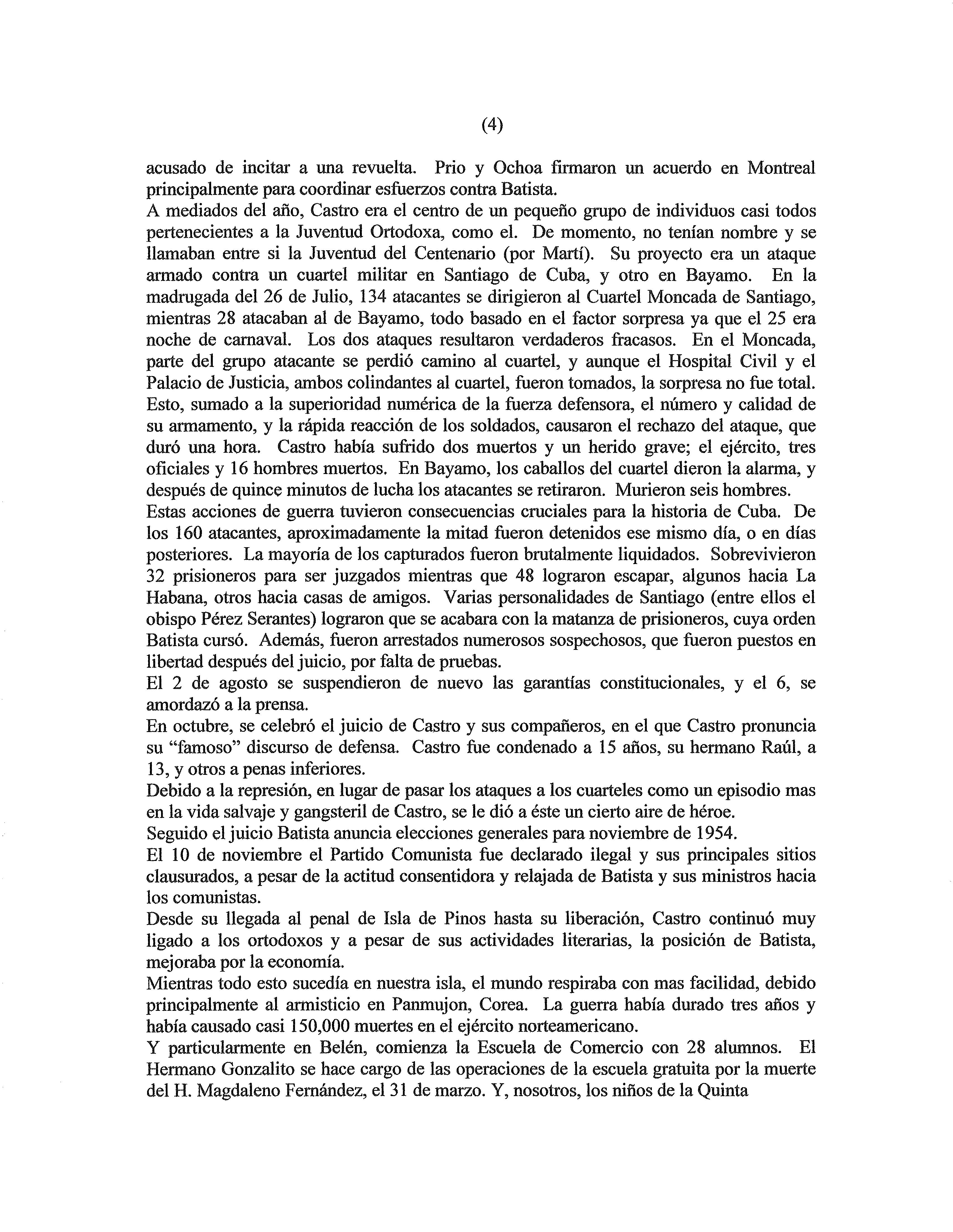 En octubre, se celebro el juicio de Castro y sus compafieros, en el que Castro pronuncia su "famoso" discurso de defensa. Castro fue condenado a 15 aiios, su hermano RaUl, a 13, y otros a penas inferiores.