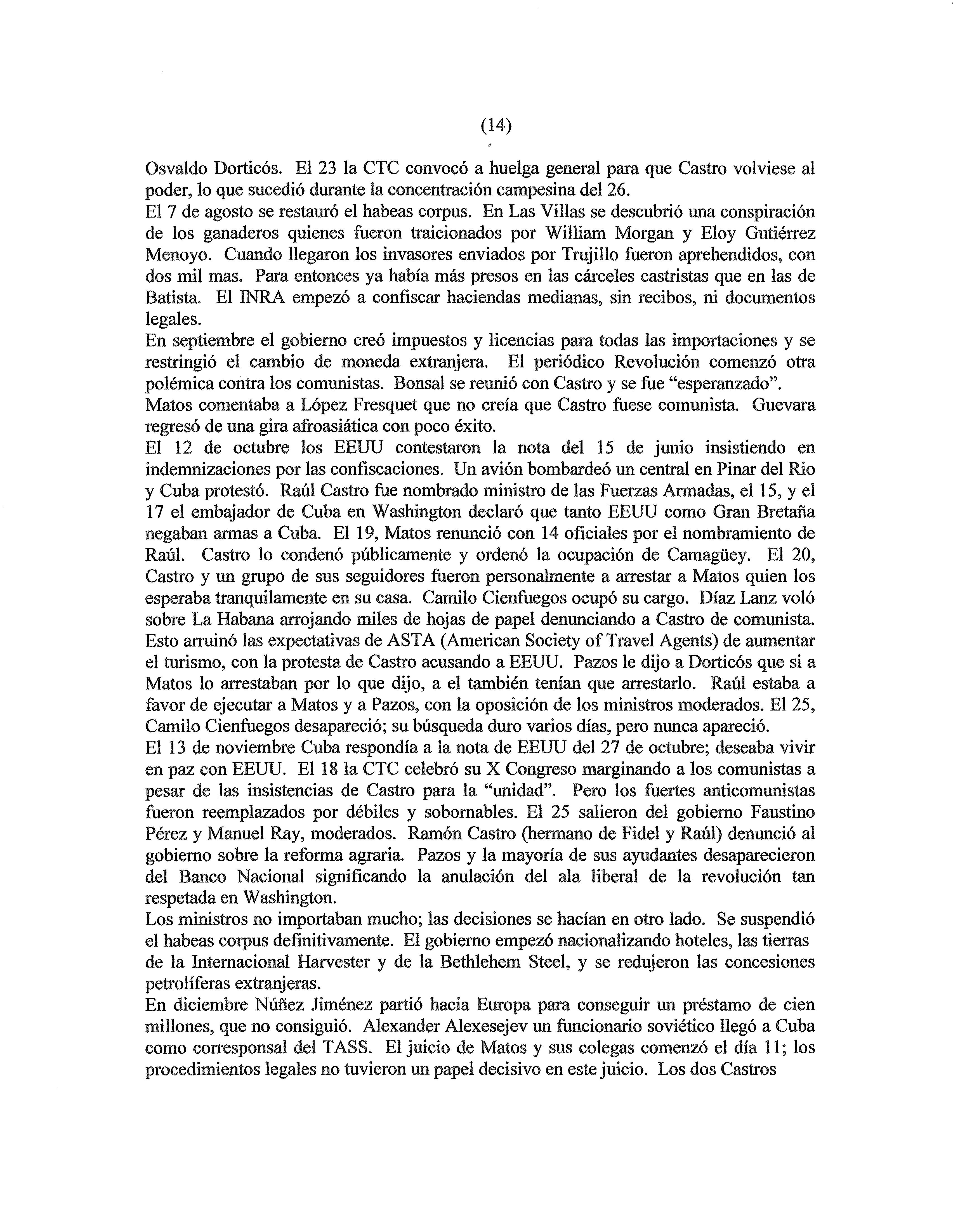El 17 de agosto Spruille Braden declar6 que "Castro era un agente, si es que no era miembro del partido comunista, y lo habia sido desde mucho antes".