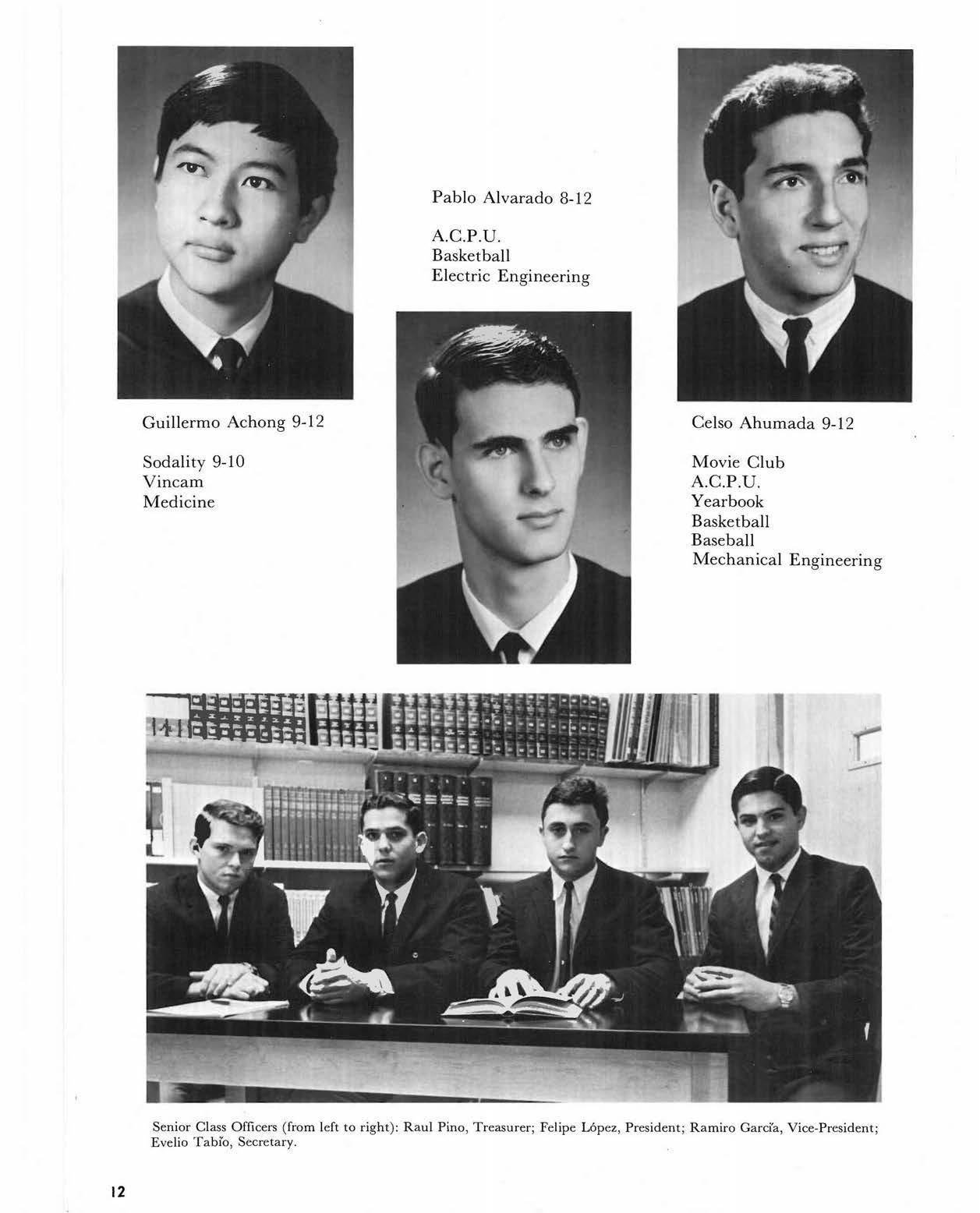 Senior Class Officers (from left to right): Raul Pino, Treasurer; Felipe Lopez, President; Ramiro Garda, Vice-President; Evelio Tabi'o, Secretary.
