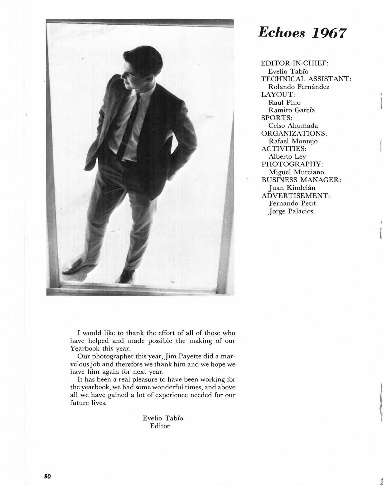 Cincuenta afios de entrega incondicional aDios en la Compafila de Jesus. Durante cuarenta largos afios has dado a Belen lo mejor de tu trabajo, tu optimismo, tu sacerdocio, tu amor. La facultad y los alumnos del Colegio de Belen te dedicamos estas paginas deL ECHOES de 1967 como si'mbolo de admiraci6n y agradecimiento.