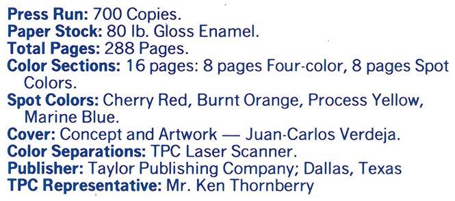 Publisher: Taylor Publishing Company; Dallas, Texas TPC Repres entative: Mr. Ken Thornberry