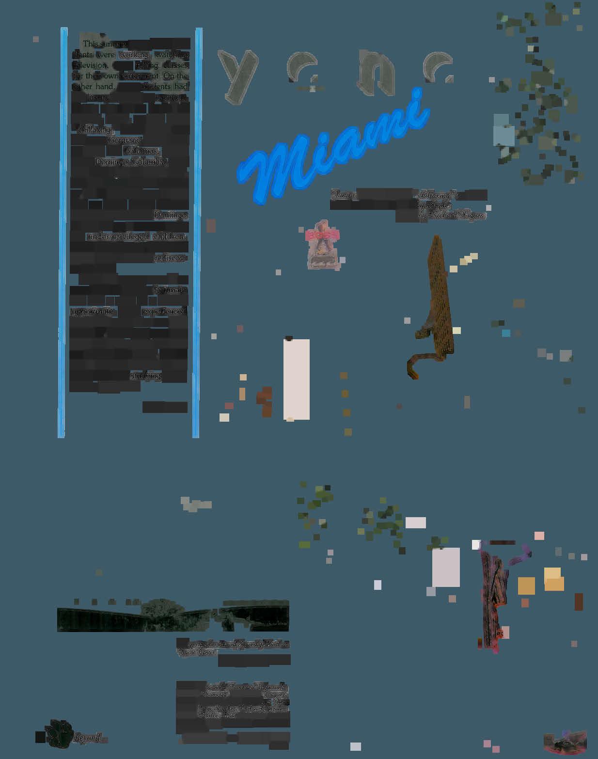 some stu of going on vacation. Some vacations included cruises, tours, or just plain "chillaxing . " Some places visited were: Germany, Cuba, Puerto Rico, the Bahamas, Spain, Santo Domingo, Columbia, Canada, New York, St. Louis, Italy, and the Virgin Islands. However, not all vacations were all play and no work Junior Michael Llorente went to Santo Domingo to help set up a summer camp for under-privileged children . While another junior, Patrick Hidalgo, went to Cuba to rediscover his roots.