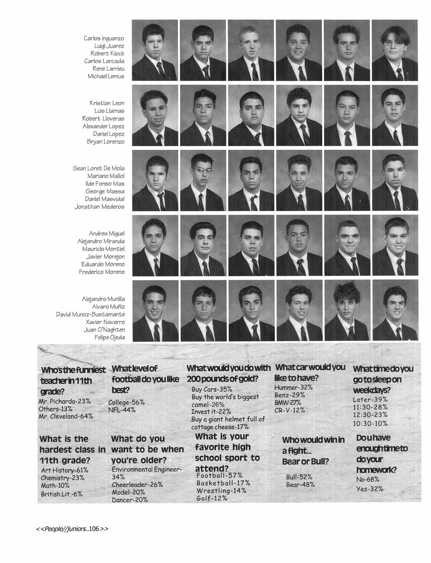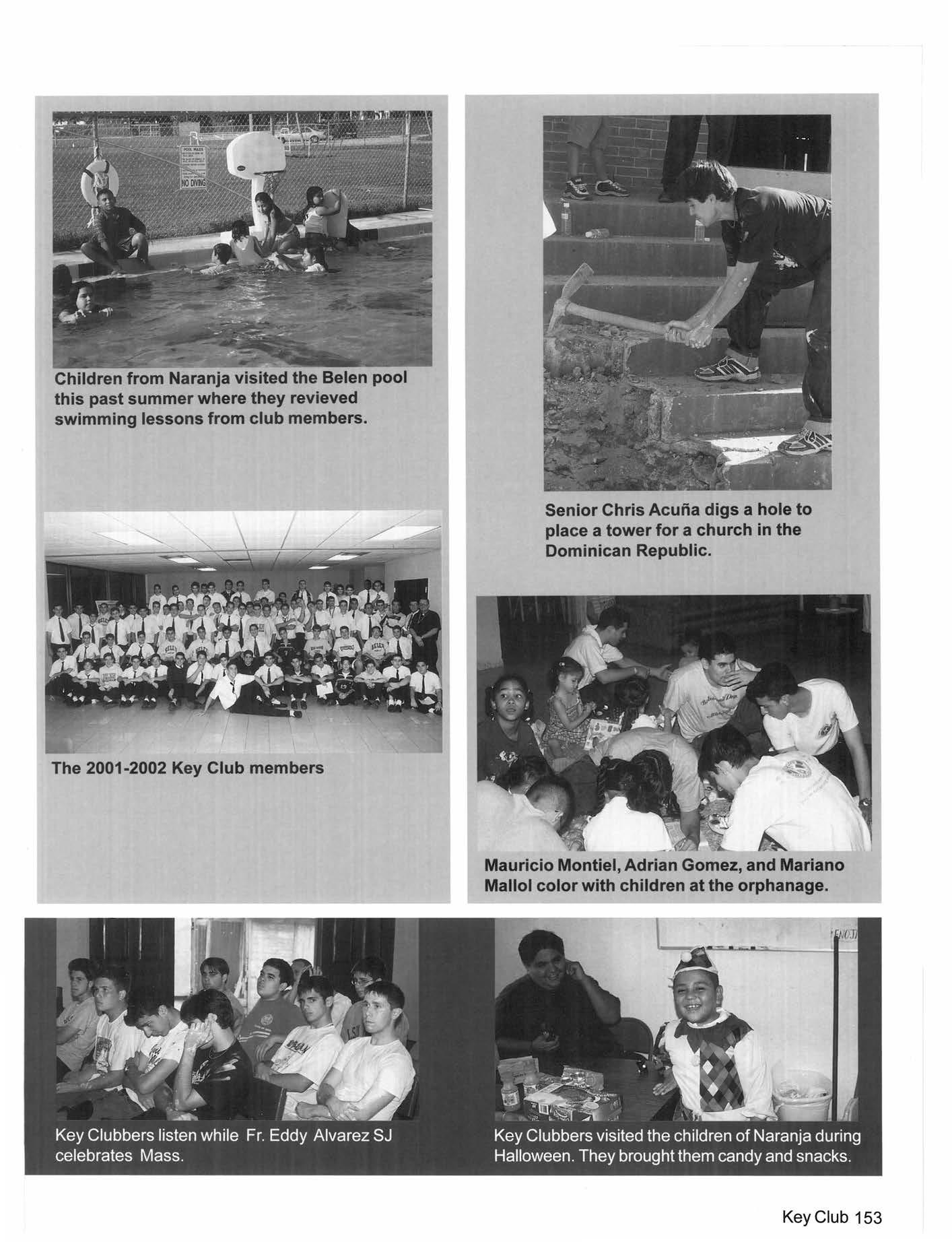 FR. WILLIE GARCIA-TUNON SJ ACCOMPANIED BY SENIORS JC ALAM , MANNY SANTELICES , AND ANDRES BAYON. ALSO JUNIORS DANNY RODRIGUEZ , FELIPE OJEDA , RENE CARBALLO , AND IGGY DUQUESNE AS WELLAS FRESHMAN CHRIS RODRIGUEZ , AND BELEN ALUM LEO MARRERO ATTENDED THE CATHOLIC YOUTH CONFERENCE ' 01 THIS PASTSU M MERATLOYOLA UNIVERSITY IN NEW ORLEANS.