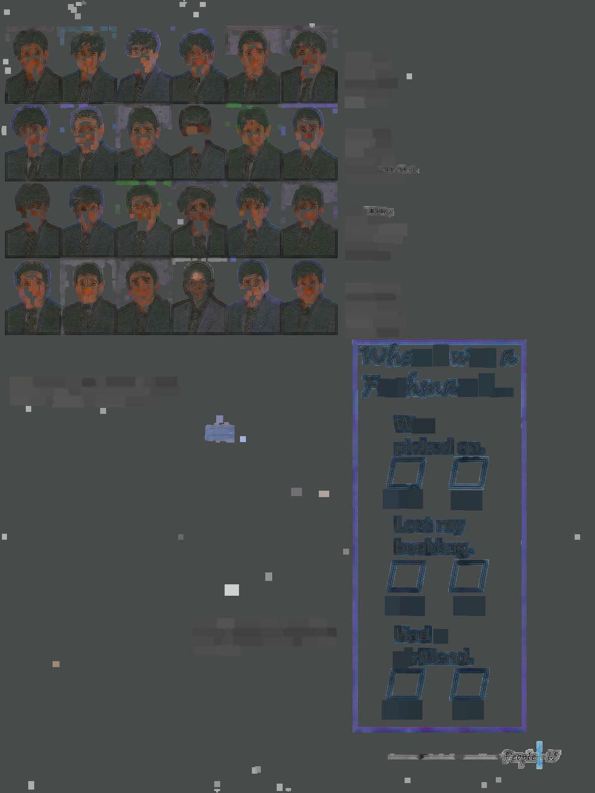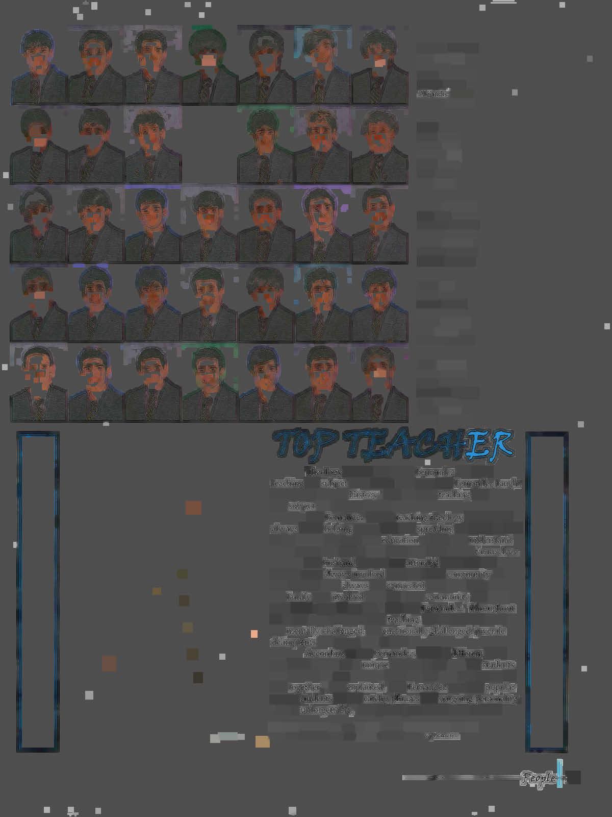 script was written by Senior Vice · President Carlos Jordan who also played Assistant Principal Armando Rodriguez. Other characters include Seniors Alex De Zayas as theology teacher Mr. Pablo T aquechel, Julio Gonzalez as theology teacher Mrs. Angie Fernandez and Julio Menache as Spanish teacher Mr. Juan Vazquez. The highlight of the skit was a musical rendition of Shakir a's "La T ortura" by Senior Richard Bandrich who played Chemistry teacher Mr. Francisco Pichardo and Senior Alexis Fernandez who played Spanish teacher Mrs. Gisela Leon. In the end, the skit only left the audience with one puzzling I question to be answered, "Who's the turkey that turned off the lights?"