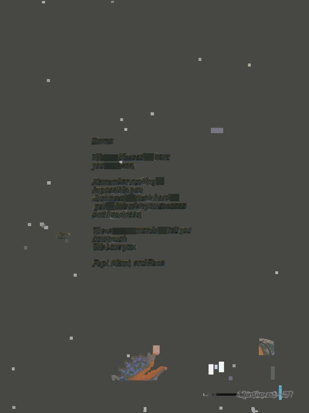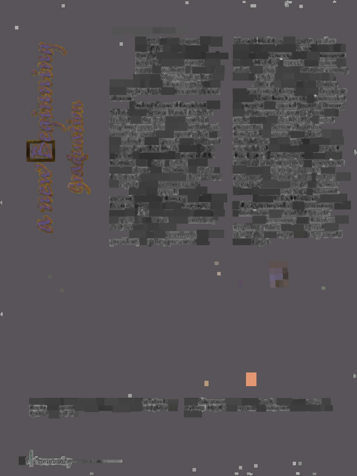 .9l.s you 6egin a new chapter in your [ije, we want to wish you much success. yod wi[[ 6e with you in yourjourney. that you are never afone. 'Hle encourage you to afways fo[[ow your dreams.