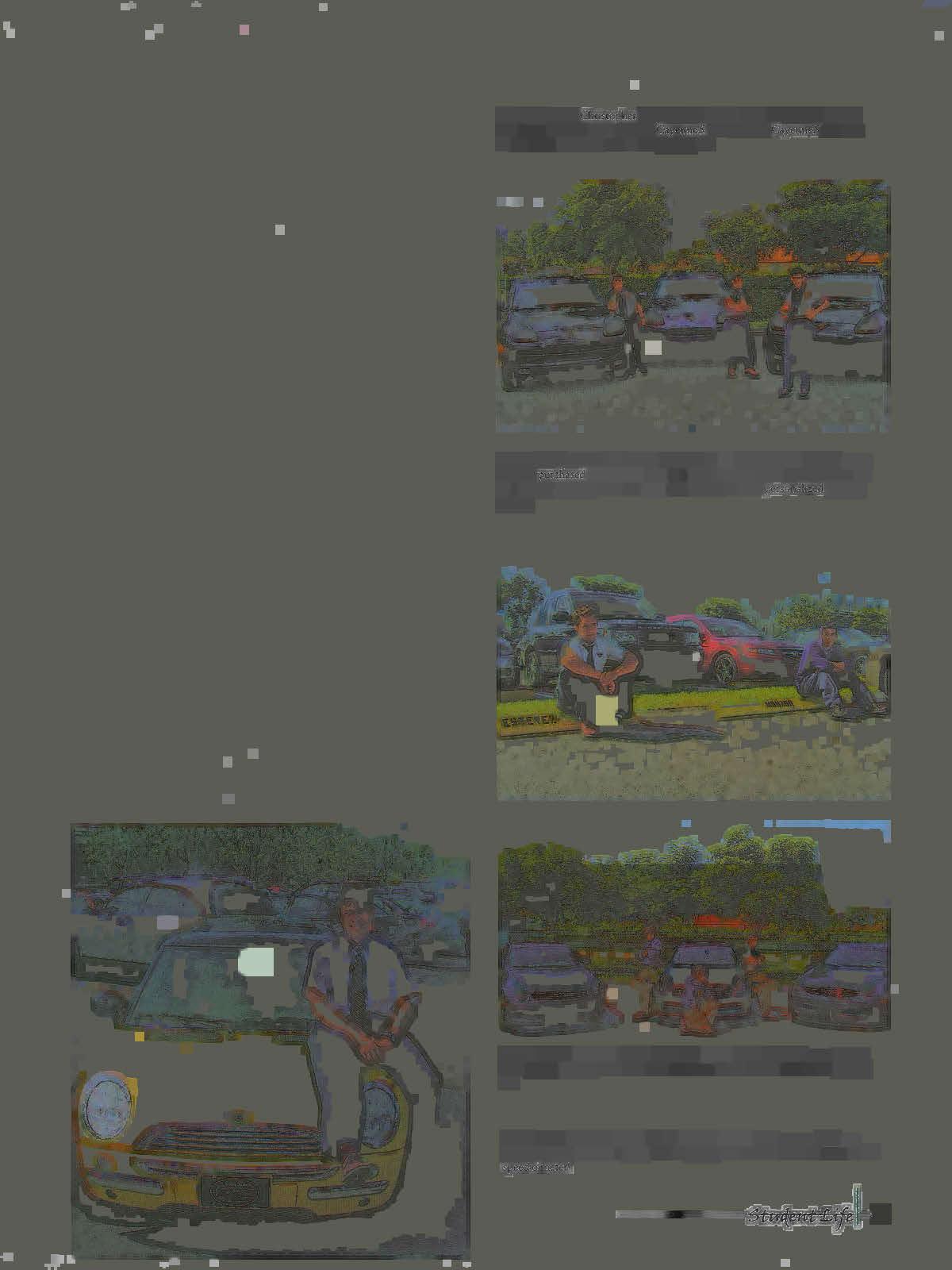 Senior Oscar Guerrero shows off his striking yellow mini cooper. This car, although petit, showed a great deal of power and abilities when it came to the