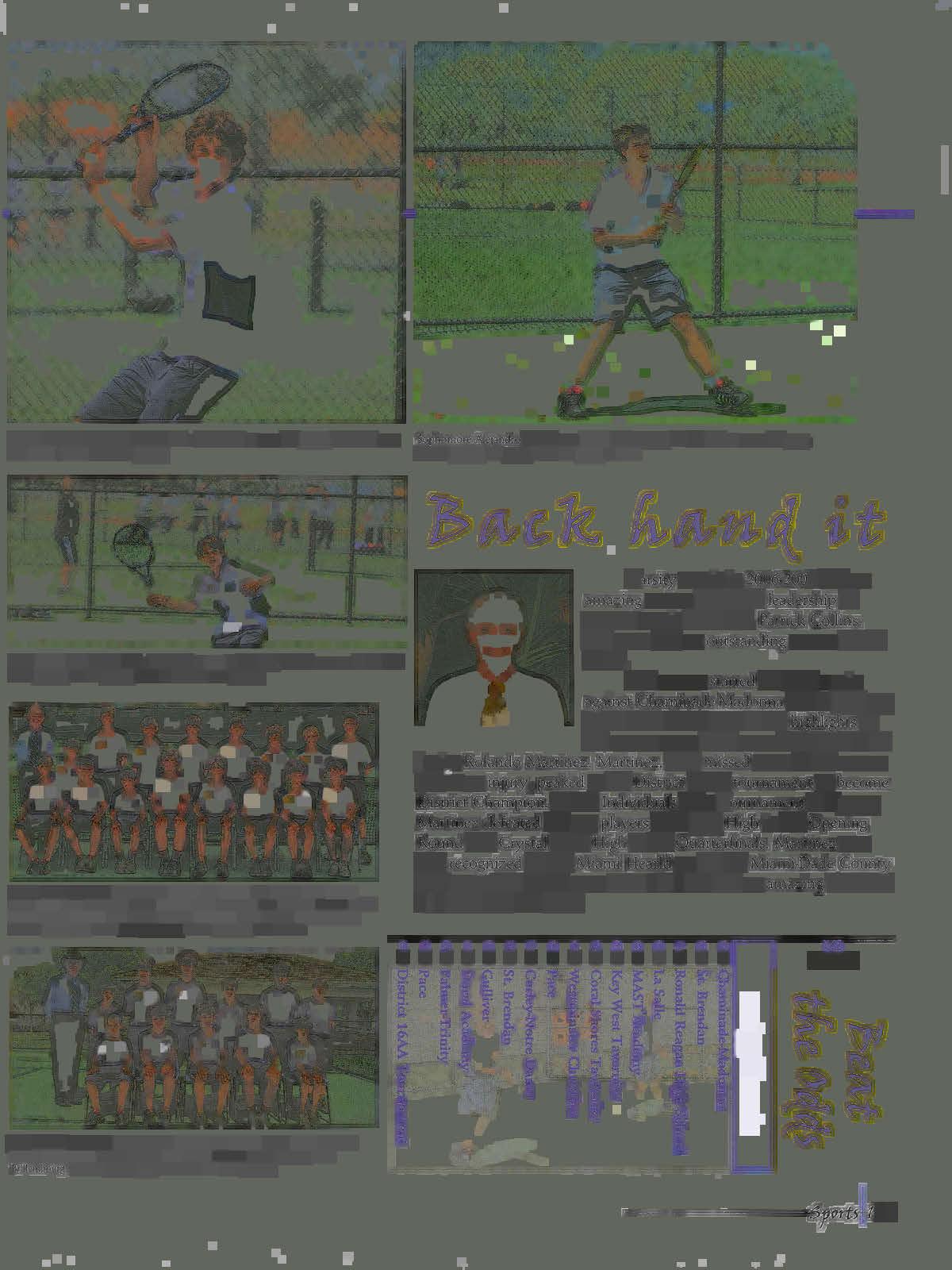 oldest brother Alex in '02 and the youngest, Christopher, is set to graduate in '10. All three of the Otero brothers David, Brian and Benjamin participate in the track and cross country teams, constantly pressuring each other to improve. Orlando and T ulio AlvarezBurgos are both part of the swimming team. They train and practice together everyday. The Jordan brothers, Matthew and Carlos, are both alter servers and serve frequently in the school wide masses. Many generations of families have been a large part of the tradition of service and participation in the school community. Their children and even their grandchildren might join this community further continuing with the legacy many have left behind. Family legacy is what has kept the school in its tight bonds from Cuba to Miami. The bond is over 150 years strong and still intact.