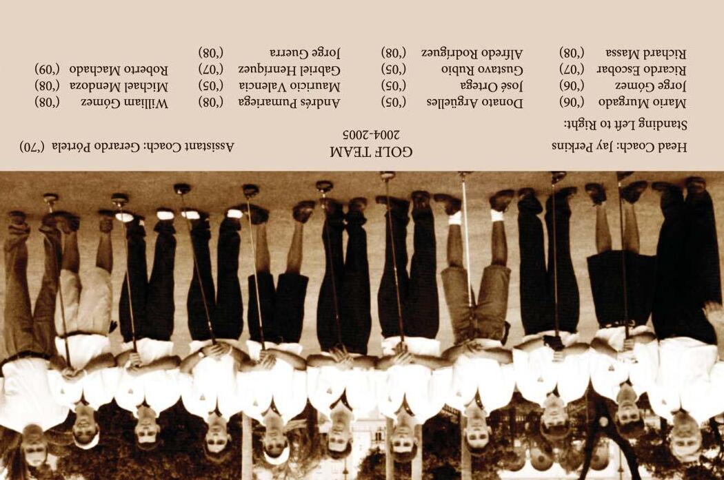 For the Athletics Section, I have to thank Carlos Barquín, Víctor Arrieta (‘95), and Mariano Loret de Mola (‘58), who helped with compiling the information and images necessary to bring about that section. Coach Barquín’s dedication to his department and Belen Jesuit athletes as well as Coach Arrieta’s record keeping and extensive photographic archive are not only commendable but ensured the success of the section. I am also thankful for the wonderful assistance provided by Coaches Rubén Marrero (‘75) and José Roca (‘84) for the Basketball subsection, Coach Jerr y Albert for the Baseball subsection, Coach Richard Stuart for the Football subsection, Coach Patrick Collins and Timothy VanScoy for the Tennis subsection, Coach María Elena Cartaya for the Golf subsection, Miriam Cambo-Mar-