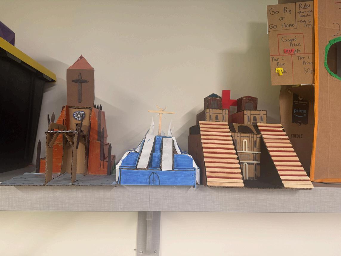 In Mrs. Anton s Latin American History class, seniors became architects at the crossroads of faith and culture. Using the engineering design process, students redesigned famous Catholic structures cathedrals, basilicas, and monuments—through the lens of Mesoamerican pyramid architecture From geometric precision to symbolic meaning, each model blended indigenous design principles with Catholic Social Teaching, creating sacred spaces that honor God, community, and cultural heritage.