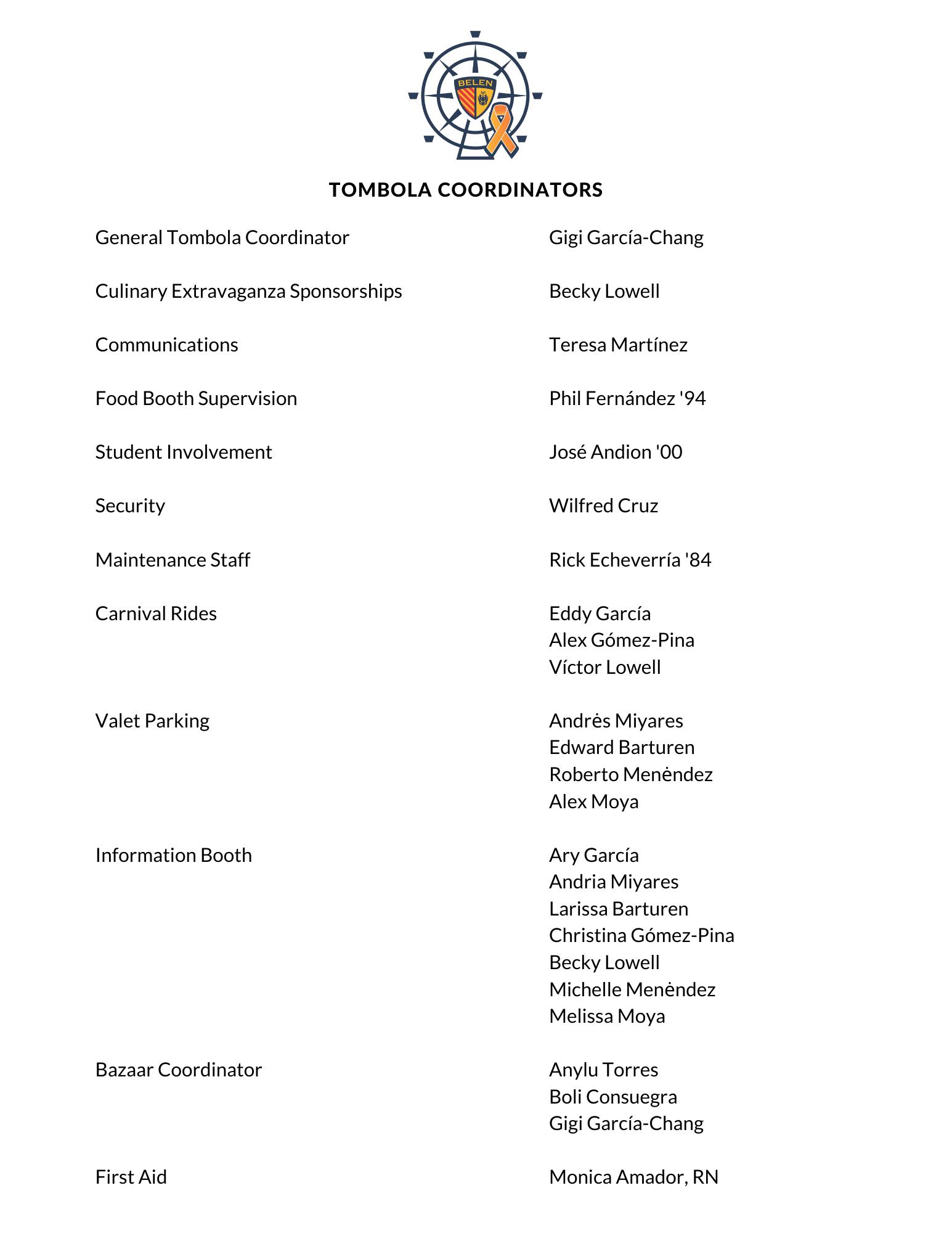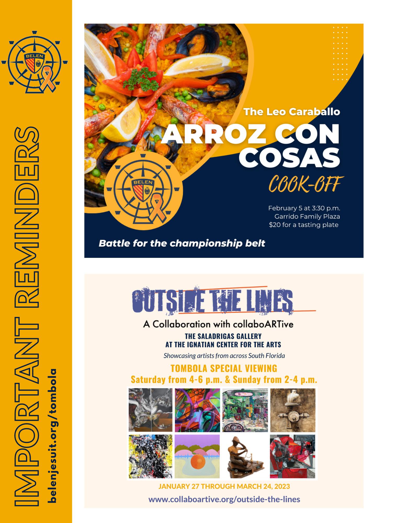 If you have questions about Tombola, please email Gigi Garcia-Chang at ggarciachang@belenjesuit.org. I M P O R T A N T R E M I N D E R S