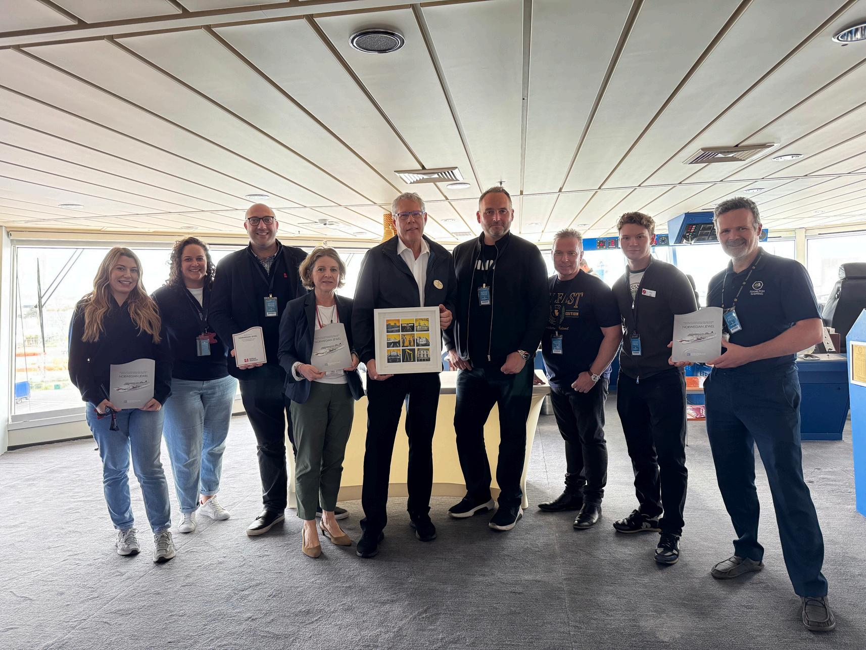 The inaugural visit to Belfast by NCL Jewel. An exchange of plaques and goodwill as the Captain and invited guests celebrate the first visit of Norwegian Jewel to the port