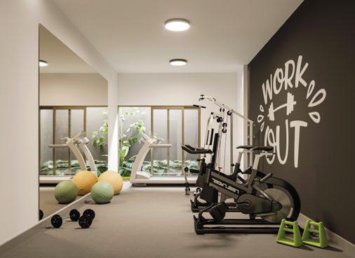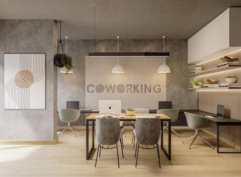 Sala de juegos y reuniones, sala de estudio y coworking, sala de niños, sala de lectura y biblioteca, gimnasio y jardín paisajístico que conecta todas las áreas.